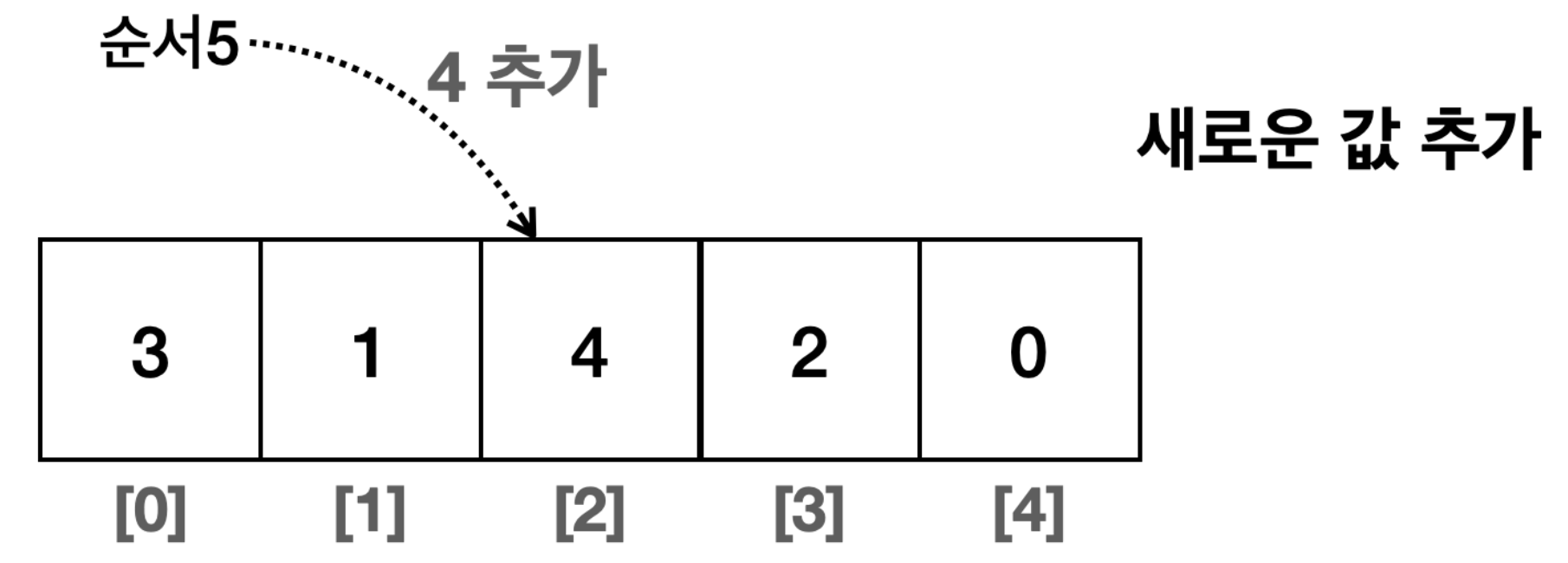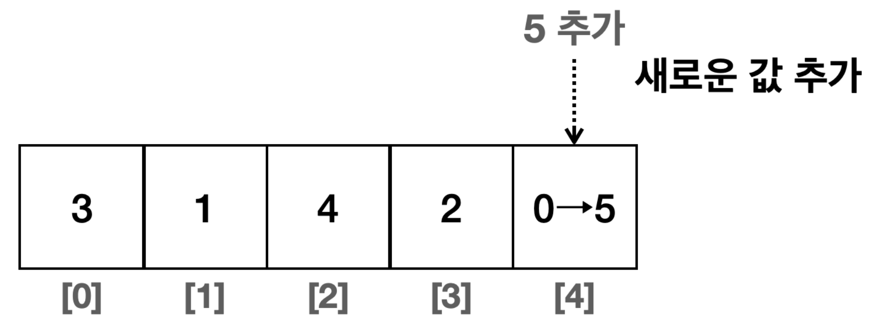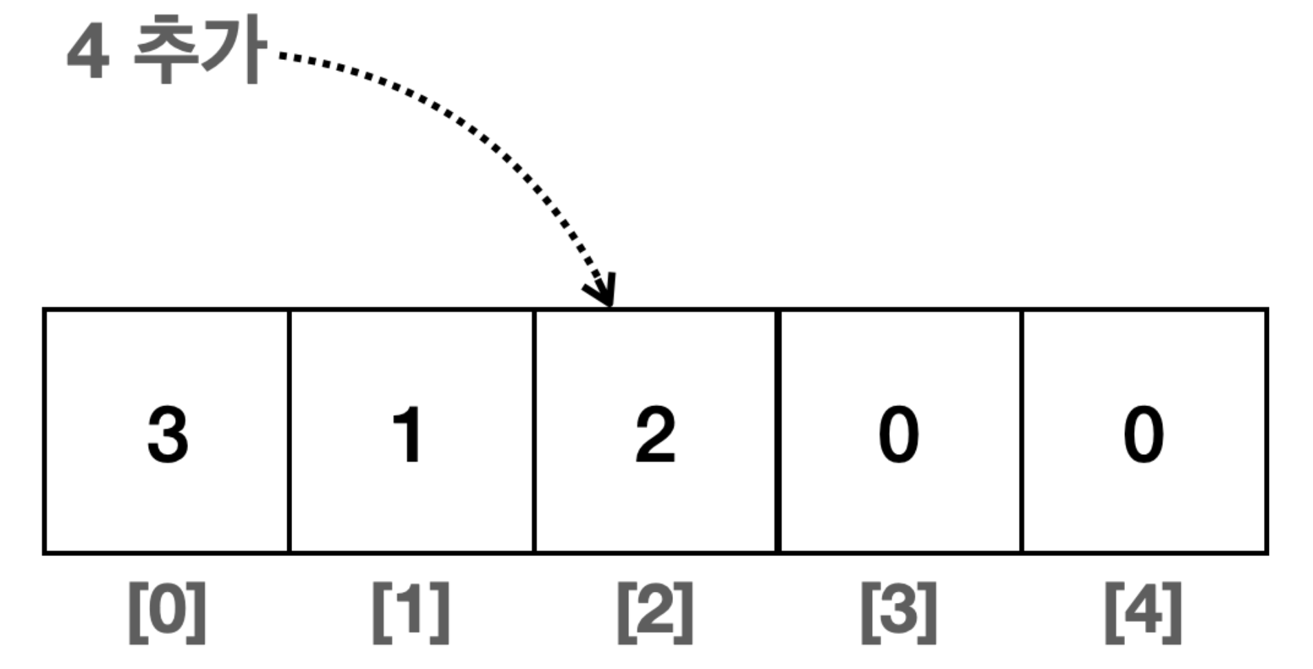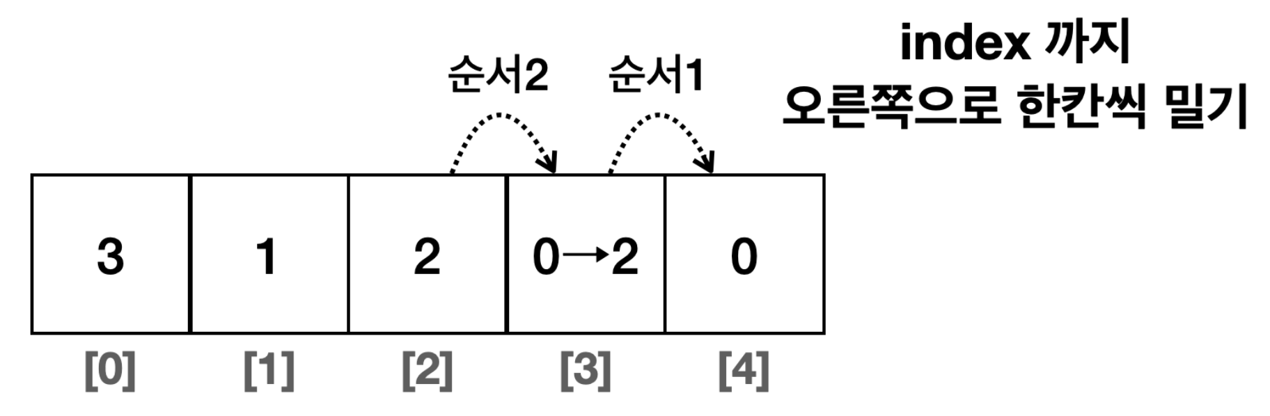 이처럼 2번 인덱스의 공간을 확보하면 그 자리에 4를 추가하면 된다.