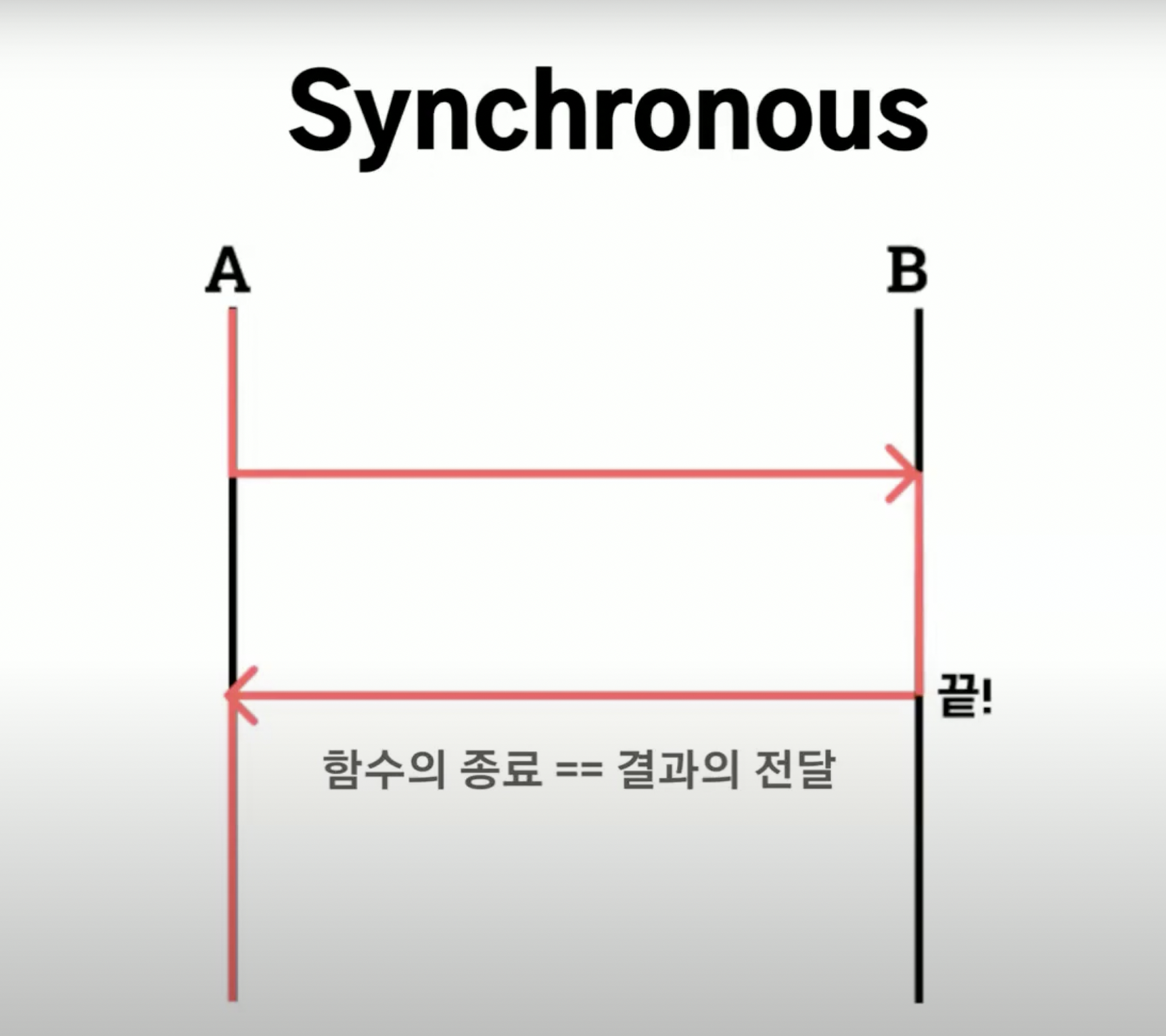 함수 A는 함수 B를 호출한다. 그리고 함수 A는 함수 B가 끝날 때까지 아무 것도 하지 못하고 대기한다.