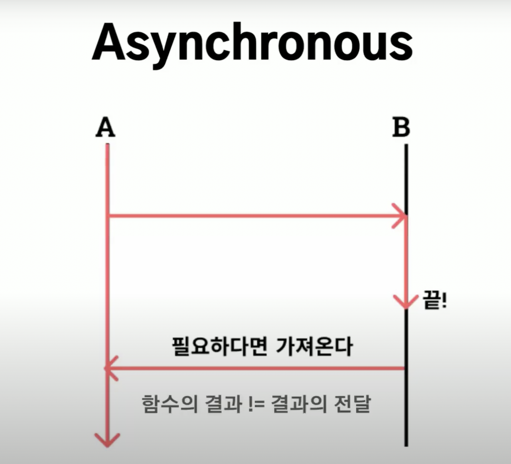 함수 A는 함수 B를 호출한다. 하지만, 함수 A는 함수 B가 끝나든 말든 자기 할 일을 계속한다.