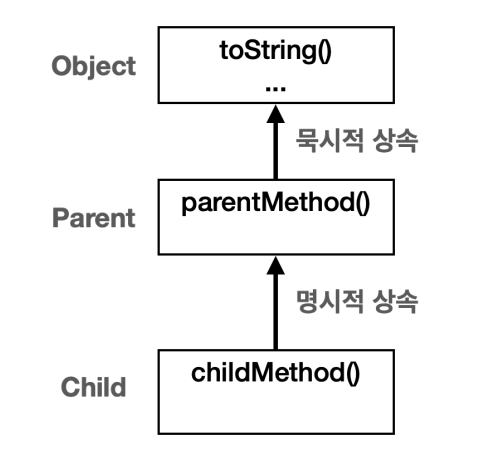 클래스에 상속 받을 부모 클래스가 없으면 묵시적으로 Object 클래스를 상속 받는다. 쉽게 말해, 자바가 자동으로 extends Object 코드를 넣어준다는 말이다.