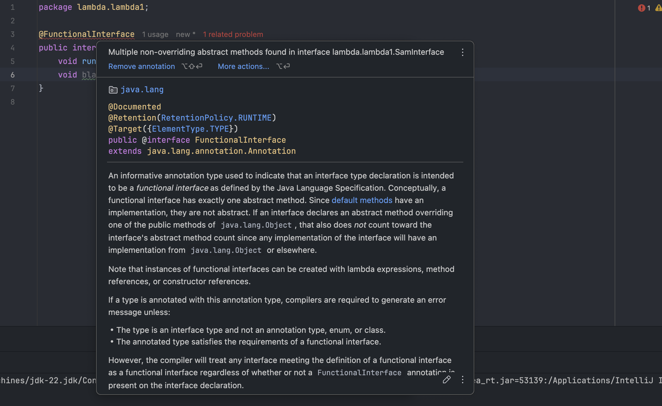 multiple non-overriding abstract methods found in interface lambda.lambda1.NotSamInterface