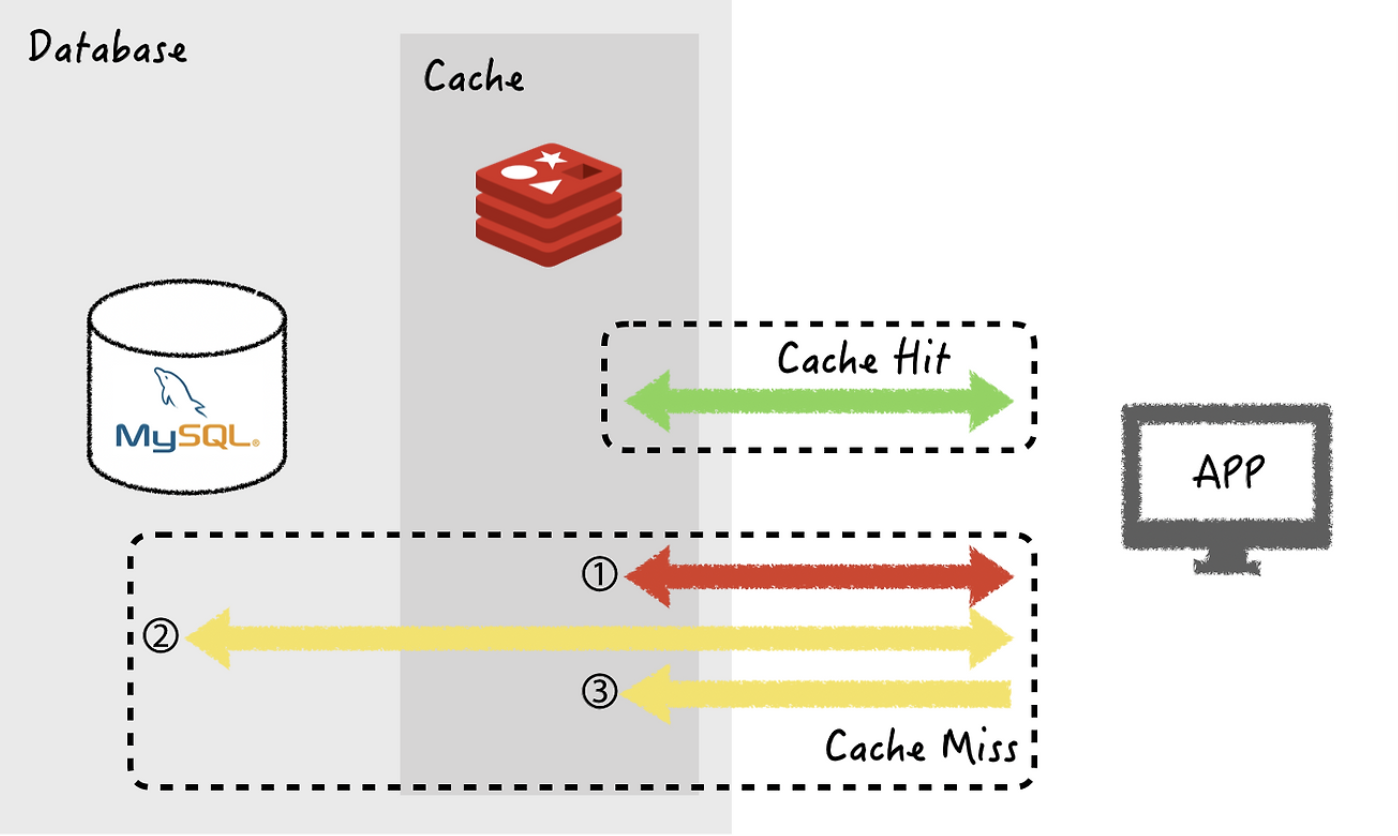 Lazy-Loading라고도 부르는 이 방식은, 앱에서 데이터를 읽는 전략이 많을 때 사용하는 전략이다. Redis를 캐시로 쓸 때 가장 일반적으로 사용하는 방법이기도 하다.