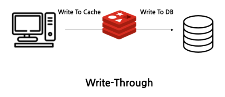 이 방식은 항상 캐시를 통해서 쓰기를 진행한다. 캐시에 먼저 쓰고, DB에 바로 쓰기 작업을 진행하는 것이다. Write-Back과 마찬가지로, 캐시는 DB와 직렬로 연결되어 있으며, DB와 캐시가 완벽히 동기화되어 있어 캐시의 데이터는 항상 최신 상태로 유지되고, 캐시와 백업 저장소에 업데이트를 같이 하기 때문에 데이터 정합성을 유지할 수 있어서 안정적이다. 따라서 데이터 유실이 발생하면 안 되는 상황에 적합한 방식이다.