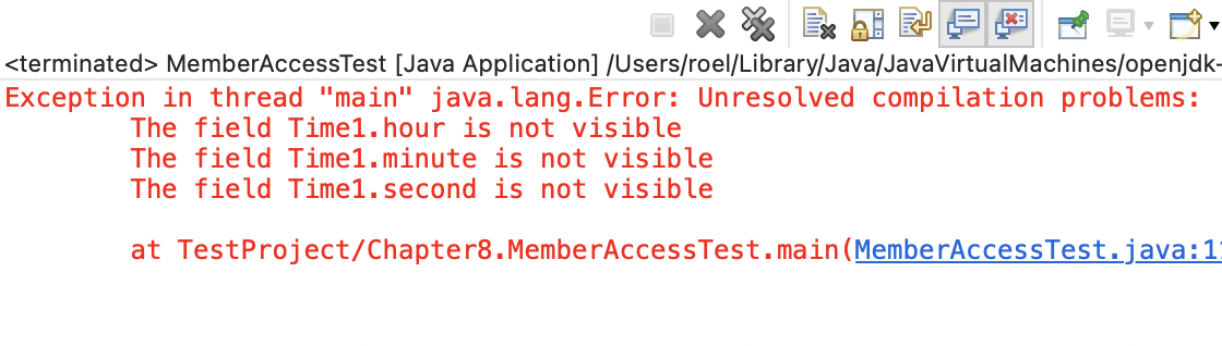 // Private members of class Time1 are not accessible.