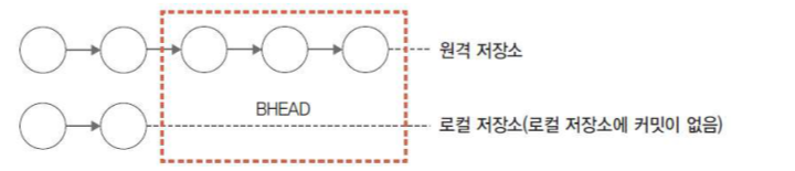 AHEAD, BHEAD는 서로 다른 저장소 간 HEAD 포인터의 위치 차이를 의미함