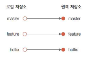 업스트림 트래킹 : 로컬 저장소의 브랜치와 원격 저장소의 브랜치는 업로드할 수 있도록 매칭