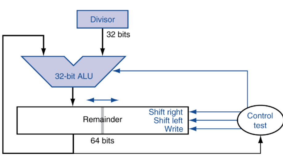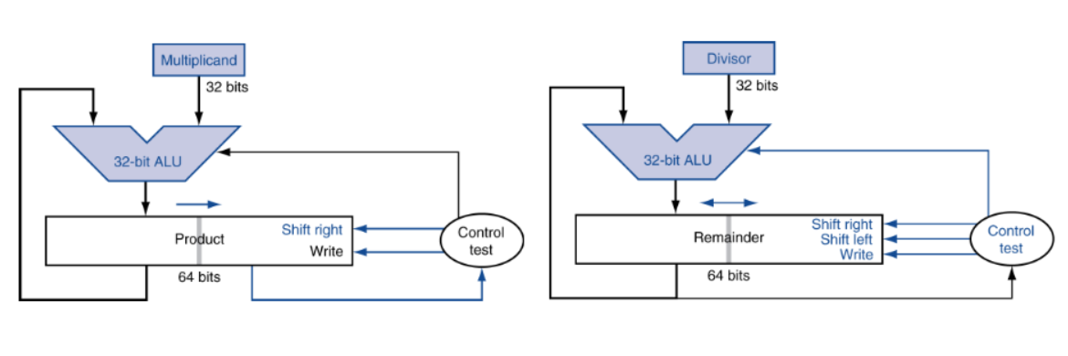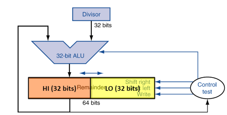 - multiplicand, divisor를 위한 single 32비트 레지스터