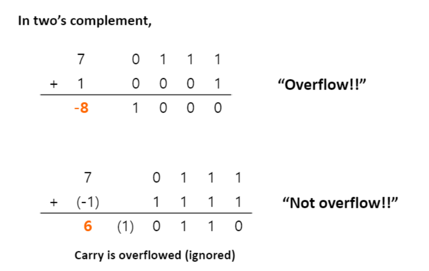 cf) carry의 overflow는 무시된다. (overflow 확인 시 sign bit만 체크한다.)