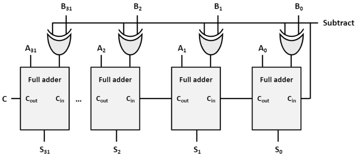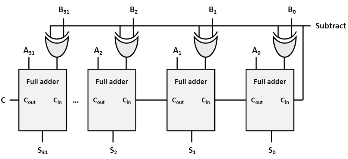 - Subtract = 0 또는 1(subtract == 1이면 Bi는 반전된다.)