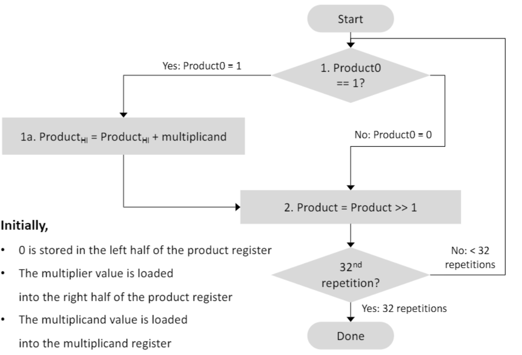 처음에 $t1(multiplier)의 값은 LO register로 load된다.