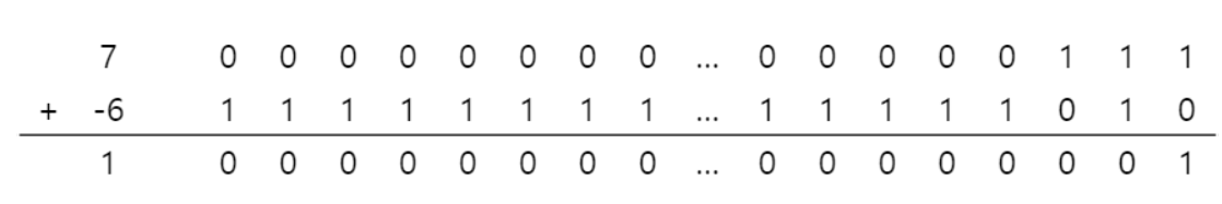 - 양수에서 음수를 뺐을 때 결과의 sign이 1이 나올 때