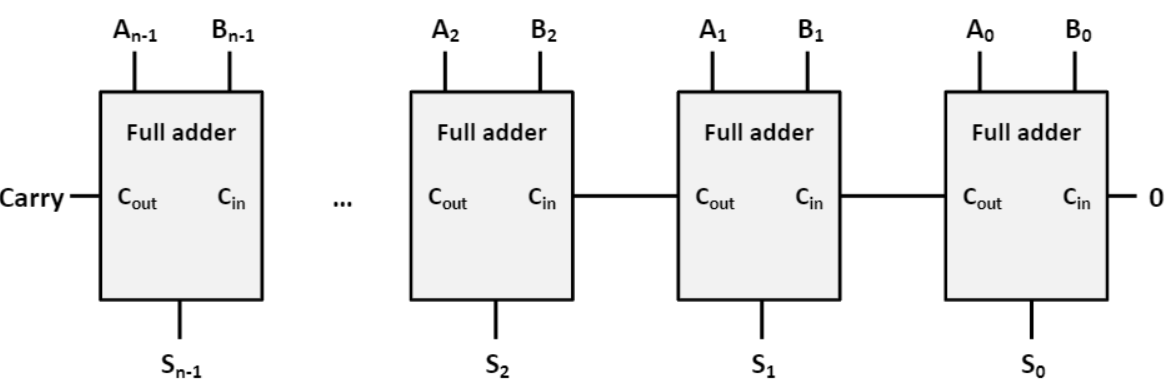 - Subtract는 또한 initial carry로 이용된다. (만일 subtract==1이면 1이 더해진다.)
