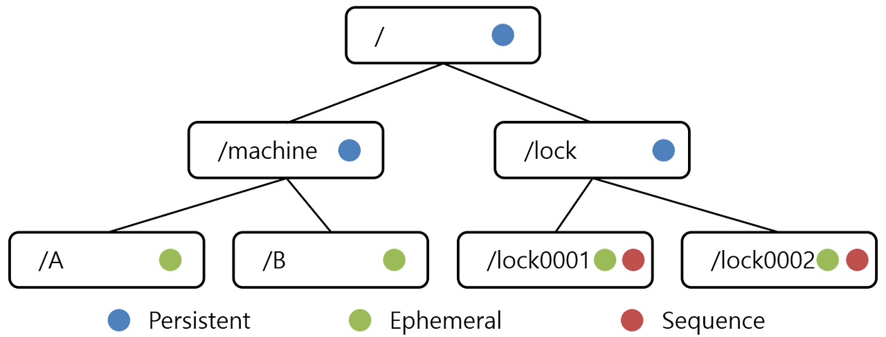 → 파일 시스템과 유사하게 노드간 계층구조(트리구조)를 가지며 각 노드를 ‘/’로 구분하나 file과 directory 구분이 없음