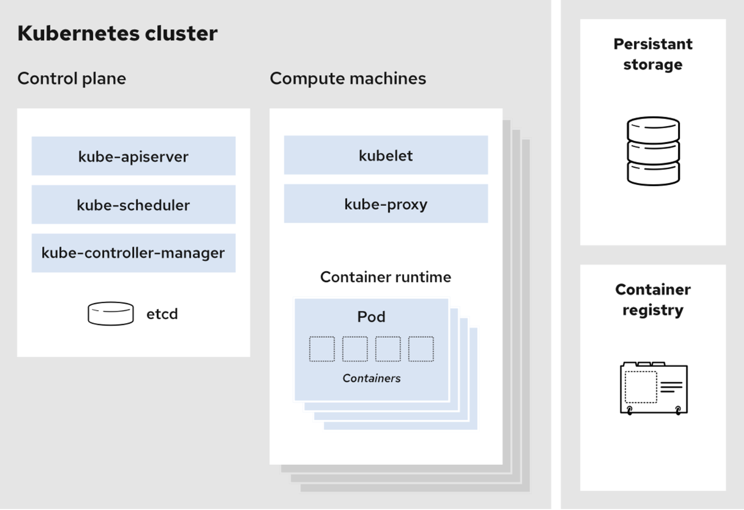 쿠버네티스 소프트웨어를 구성하는 컨트롤플레인, 노드 등과 같은 모든 구성요소가 이 클러스터 안에 있다고 할 수 있다.