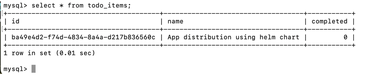 다시 mysql에 접속한 다음 my_database 내의 todo_items 테이블을 조회해보자