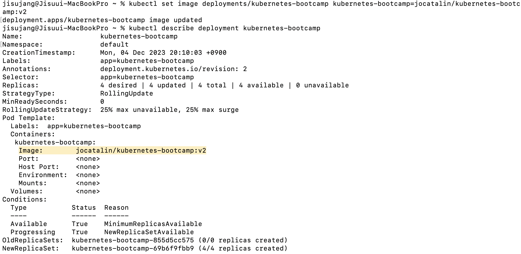 kubectl set image deployments/kubernetes-bootcamp kubernetes-bootcamp=jocatalin/kubernetes-bootcamp:v2