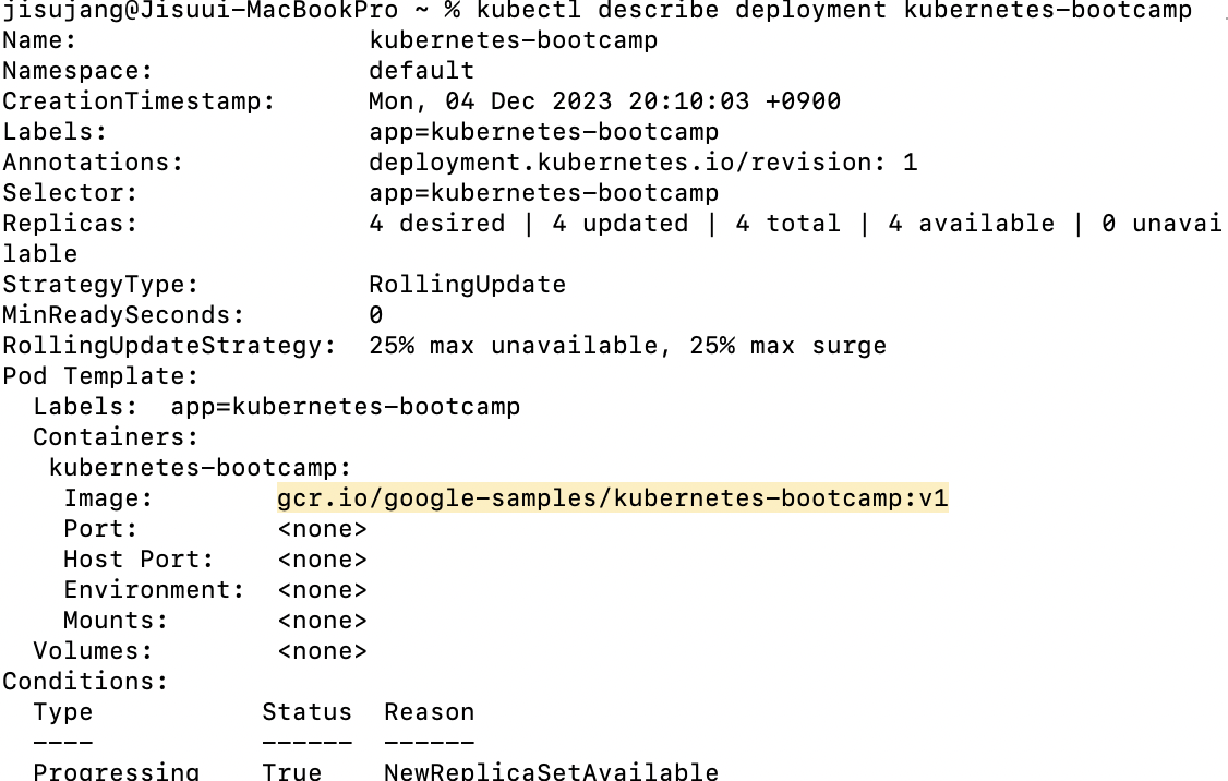 아래 명령어를 통해 조회해보면 deployment 내 컨테이너의 이미지 이름을 볼 수 있다.