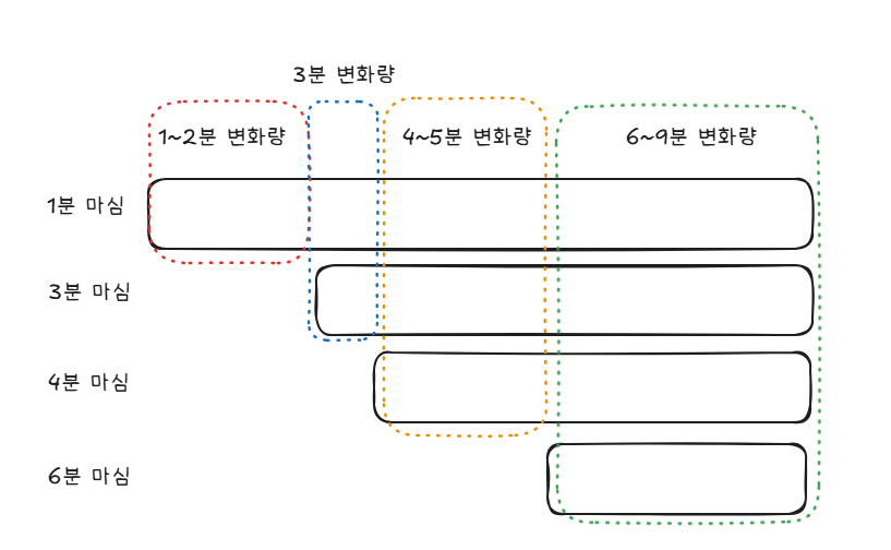 또한 이 특정 분에 결정한 마심은 해당 분부터 이후의 농도 변화의 속도를 누적시킵니다.
