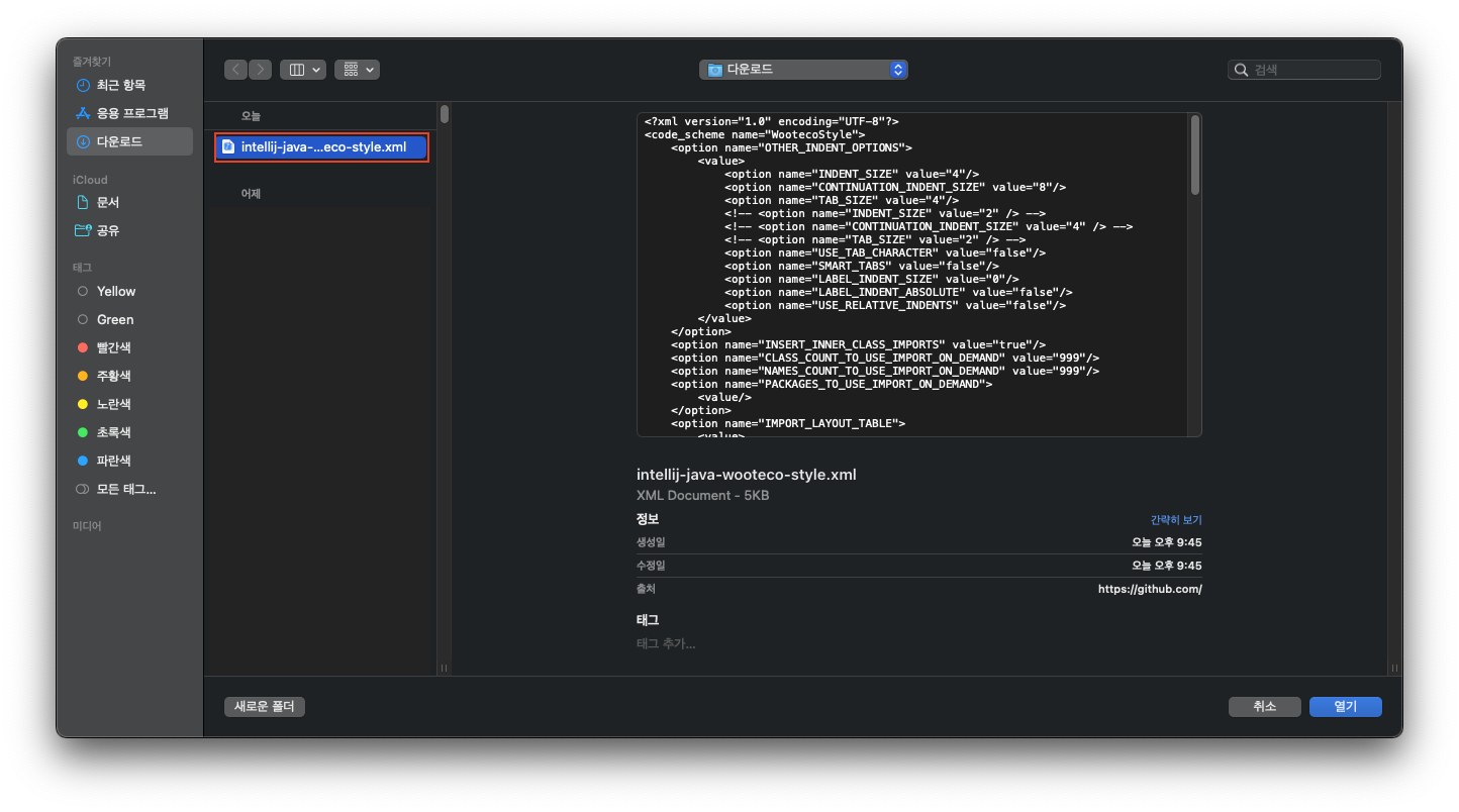 intellij-java-wooteco-style.xml 을 다운로드 받아 적당한 곳에 저장한다.