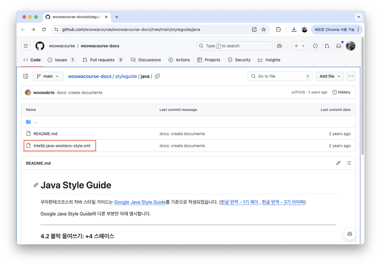 먼저 위의 사진의 Java Style Guide를 클릭하면 다음 깃허브로 이동한다.