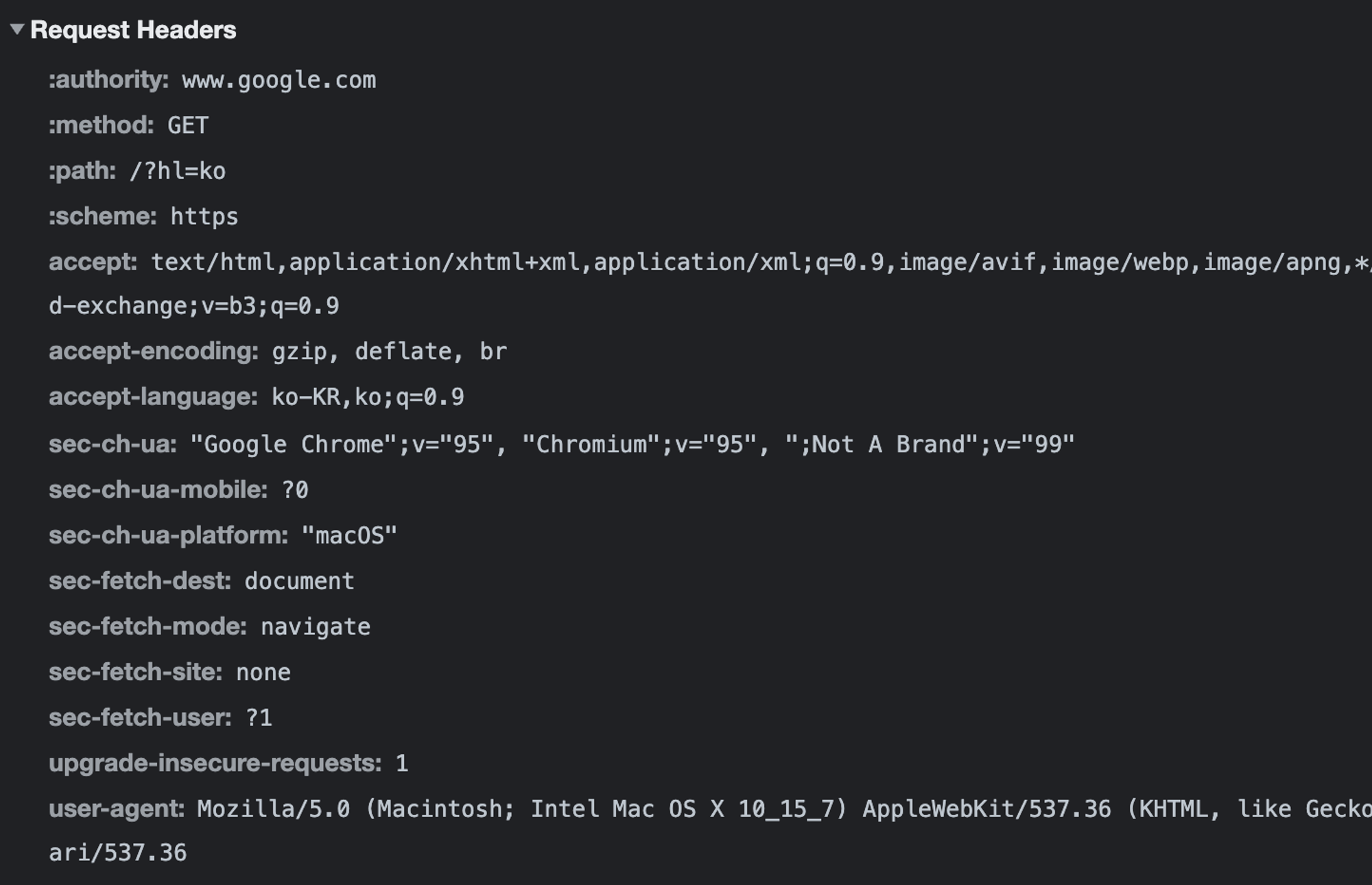 Request Header : 브라우저에서 서버로 보낸 Request 데이터
