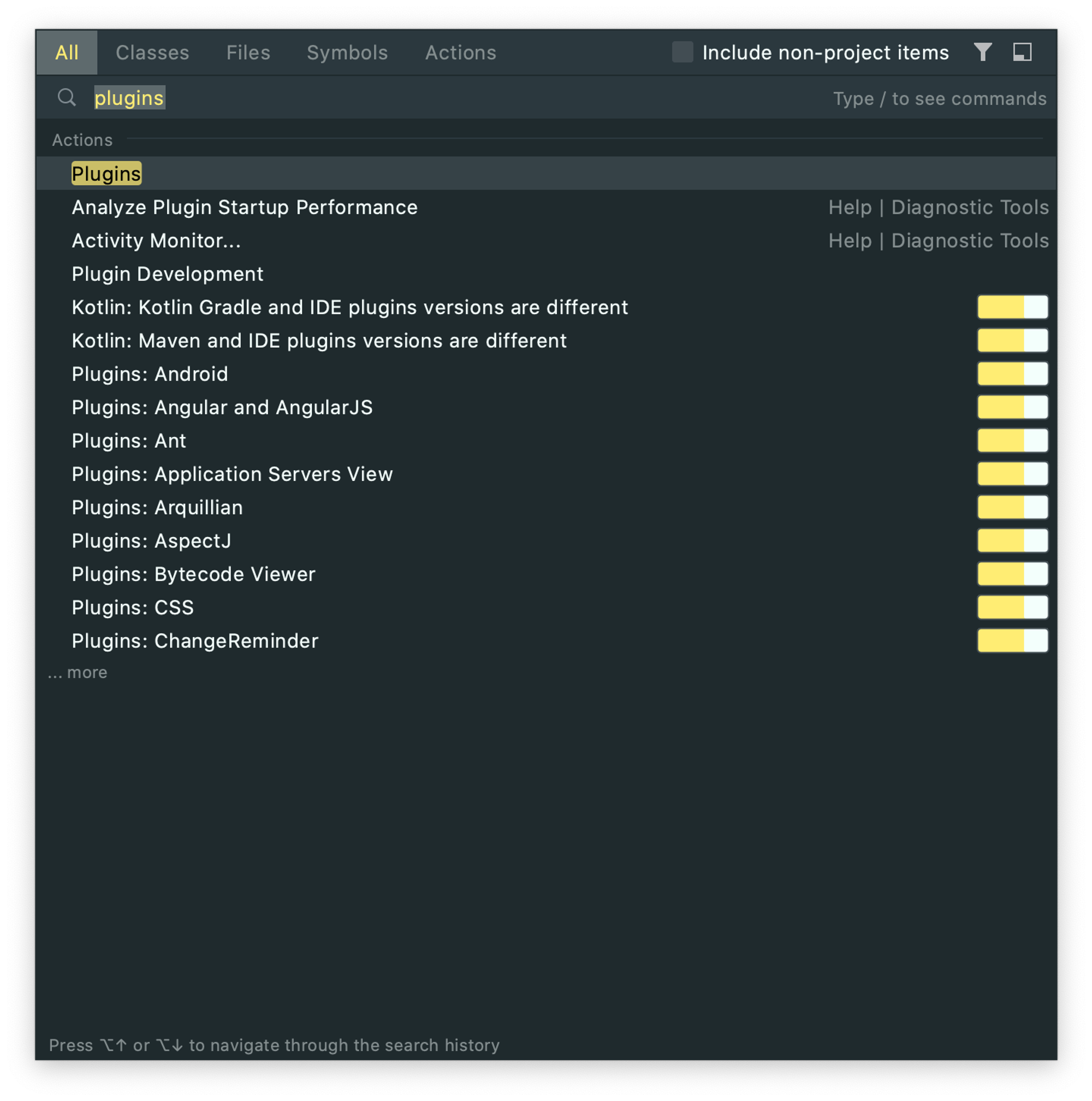 - Shift 두 번 누르고 plugins 입력 후 엔터