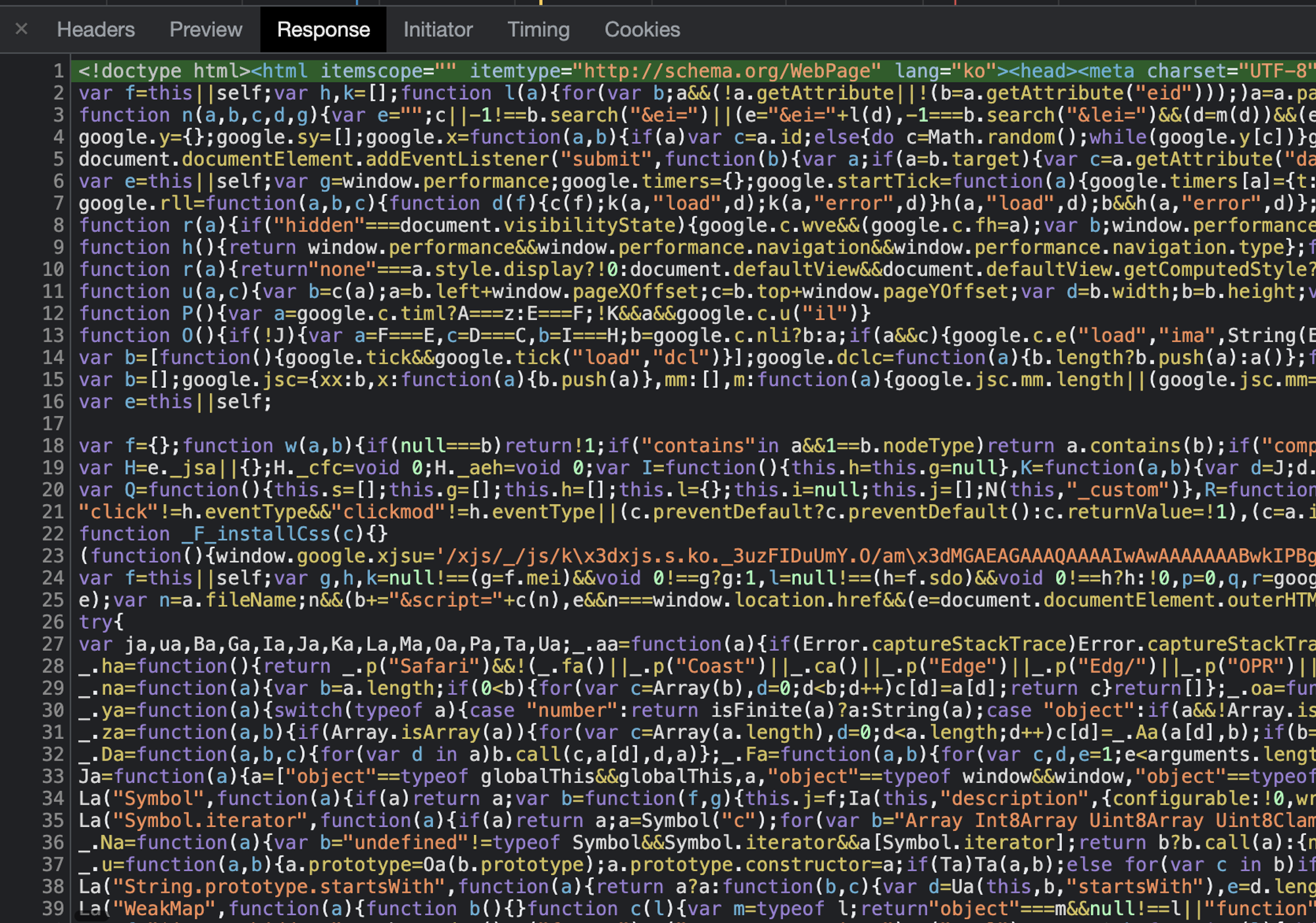 - Response : 서버에서 브라우저로 반환해준 웹 페이지를 그려주기 위한 데이터