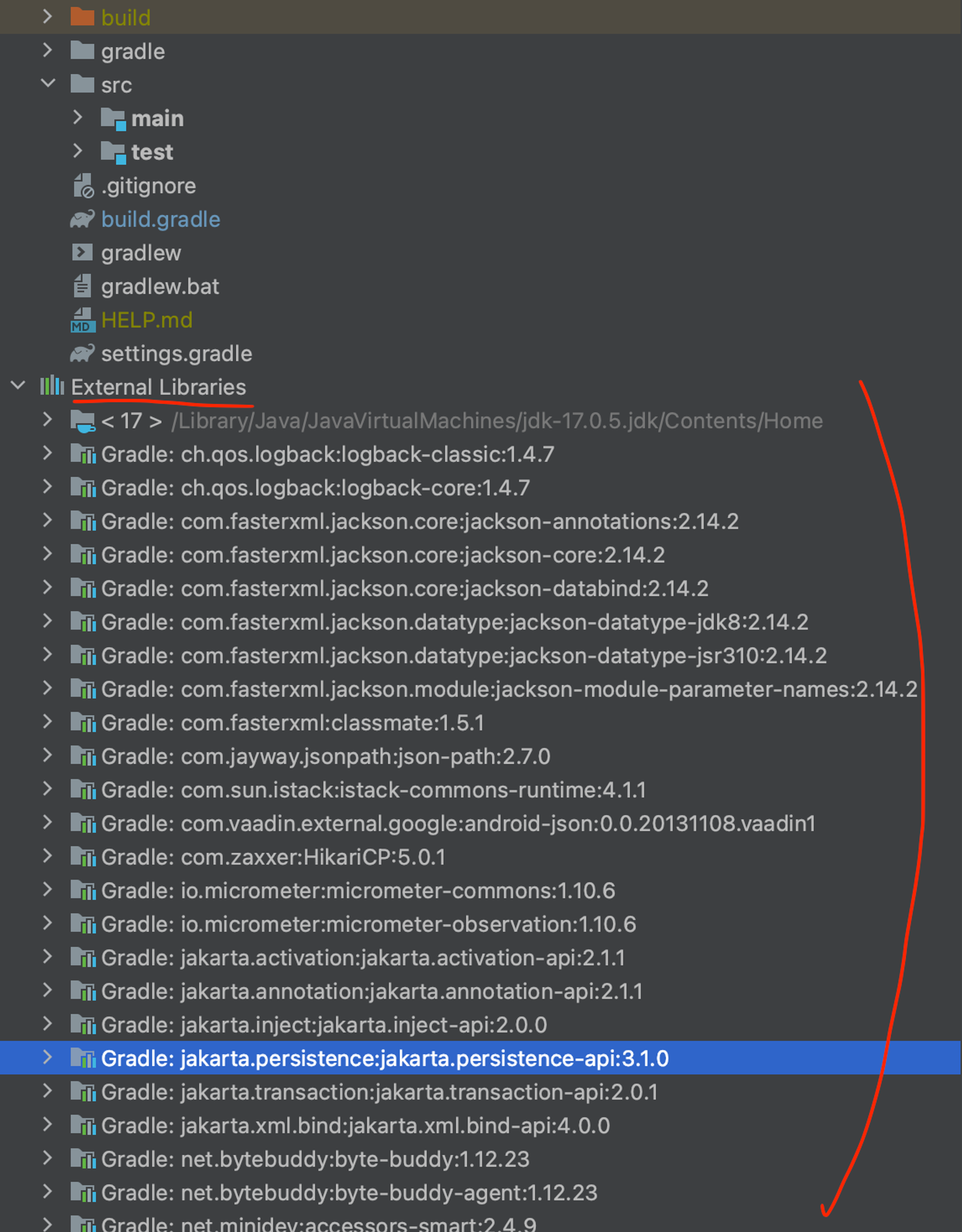 External Libraries에서 Gradle이 다운로드해온 라이브러리들을 확인