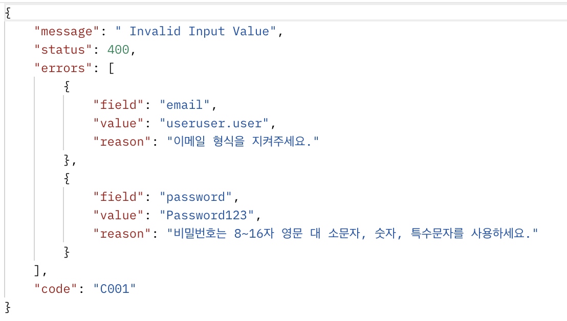그리고 이거 전부 처리해주고 다른 exception들도 예쁘게 같은 형식으로 담아줄