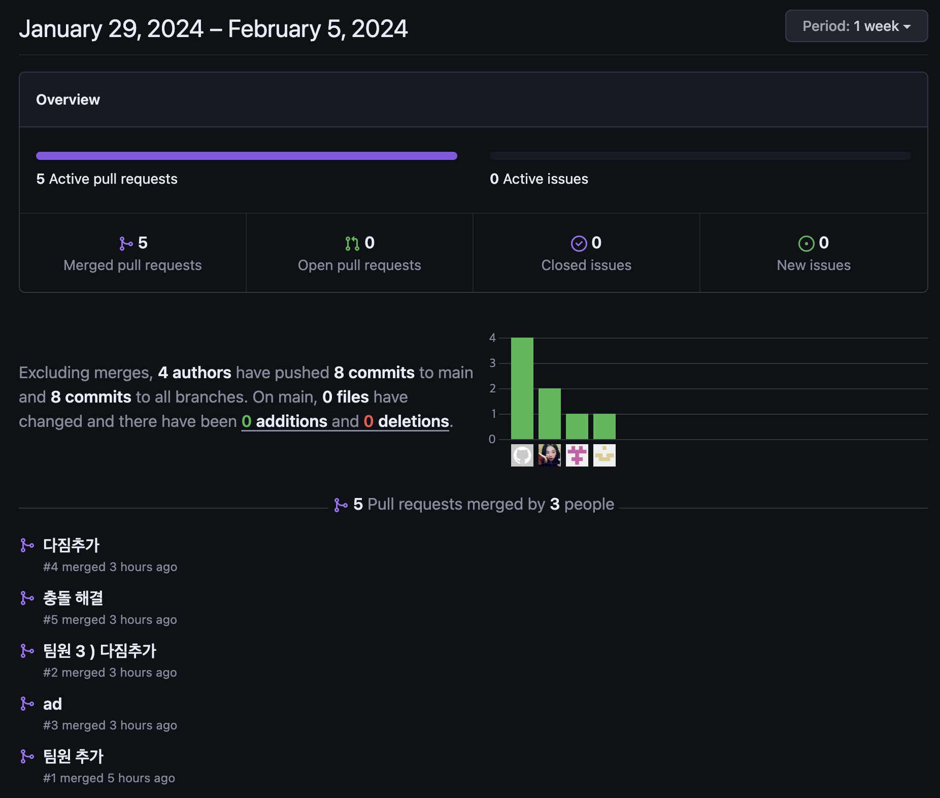 - 팀원 2, 3의 해결된 PR을 merge하기
