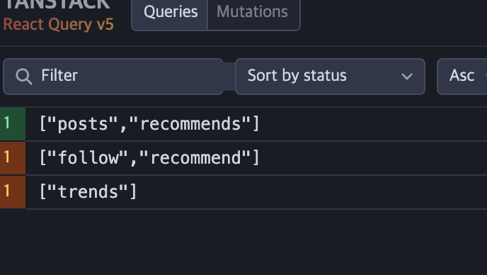 다음과 같은 화면이 뜨고 queryKey를 통해 데이터를 관리할 수 있다.