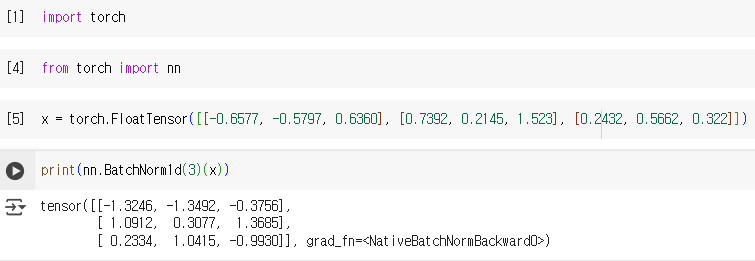 텐서의 초기값이 이렇게 형성되었다고 하자. 먼저, 의 값에 배치 정규화를 적용해보자.