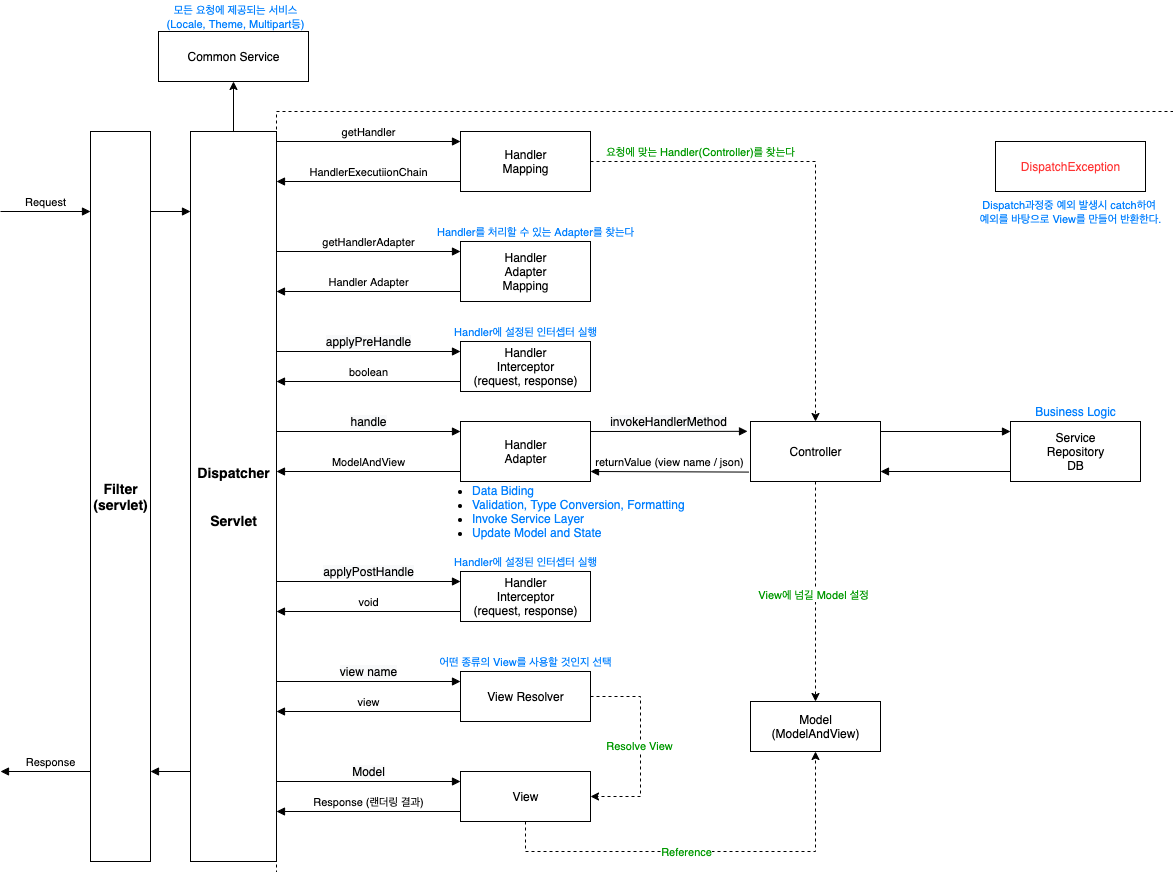 - Handler를 실행하며 비즈니스 로직 실행