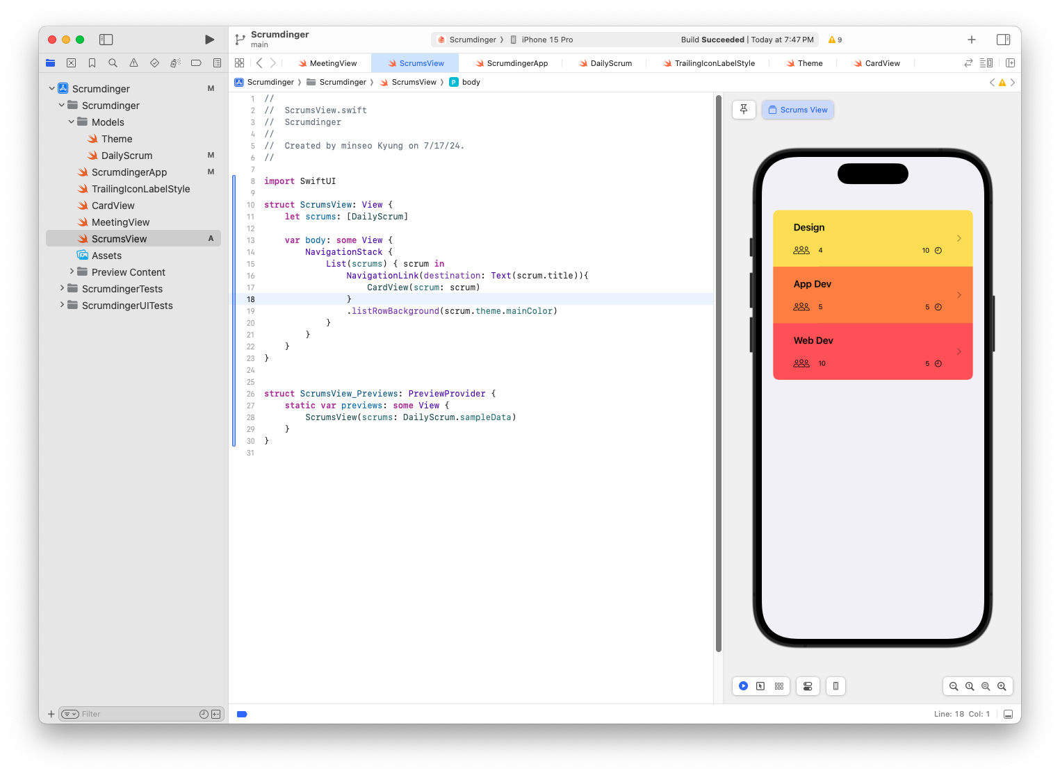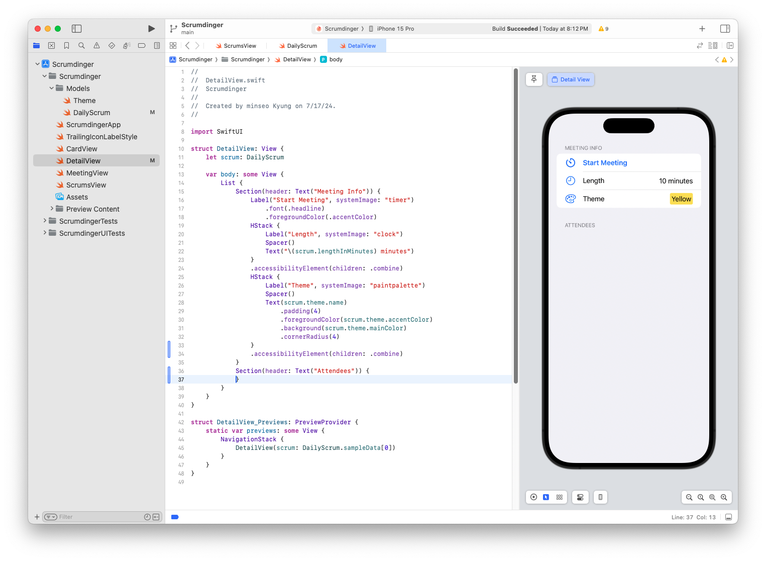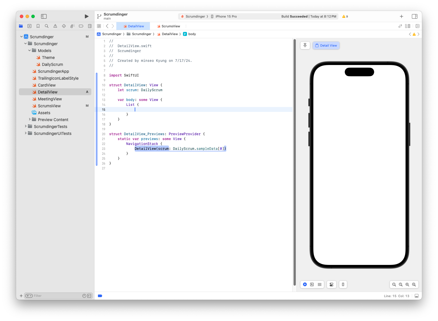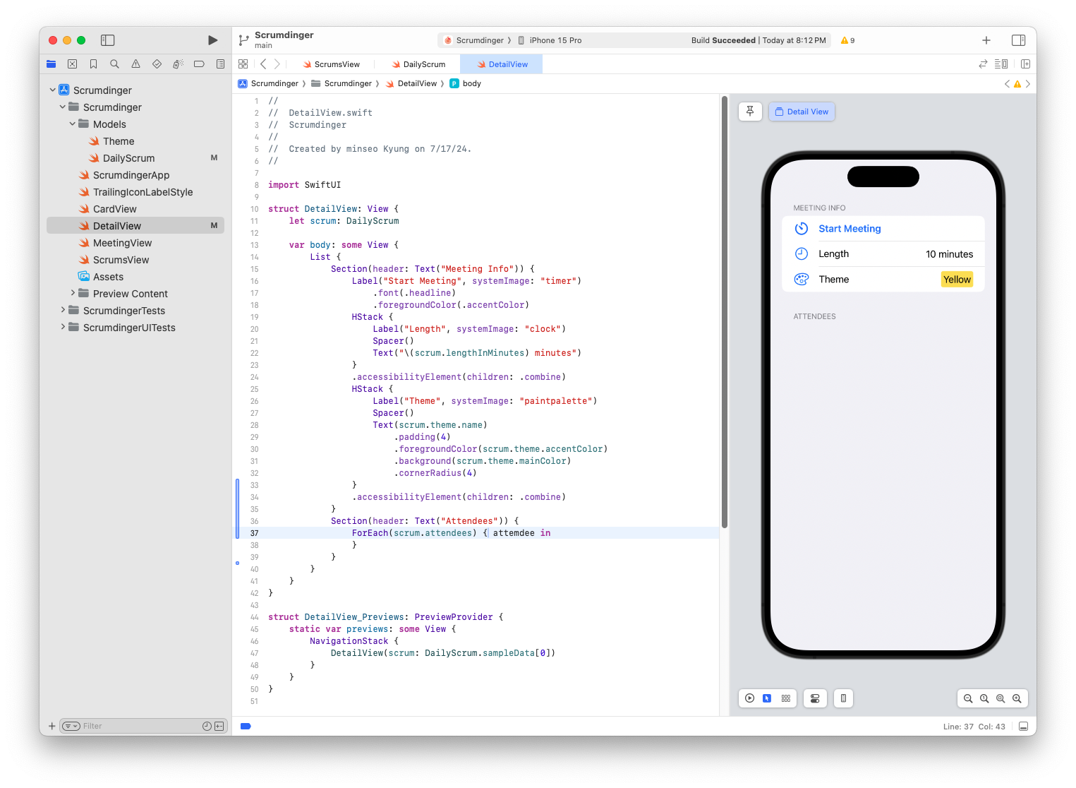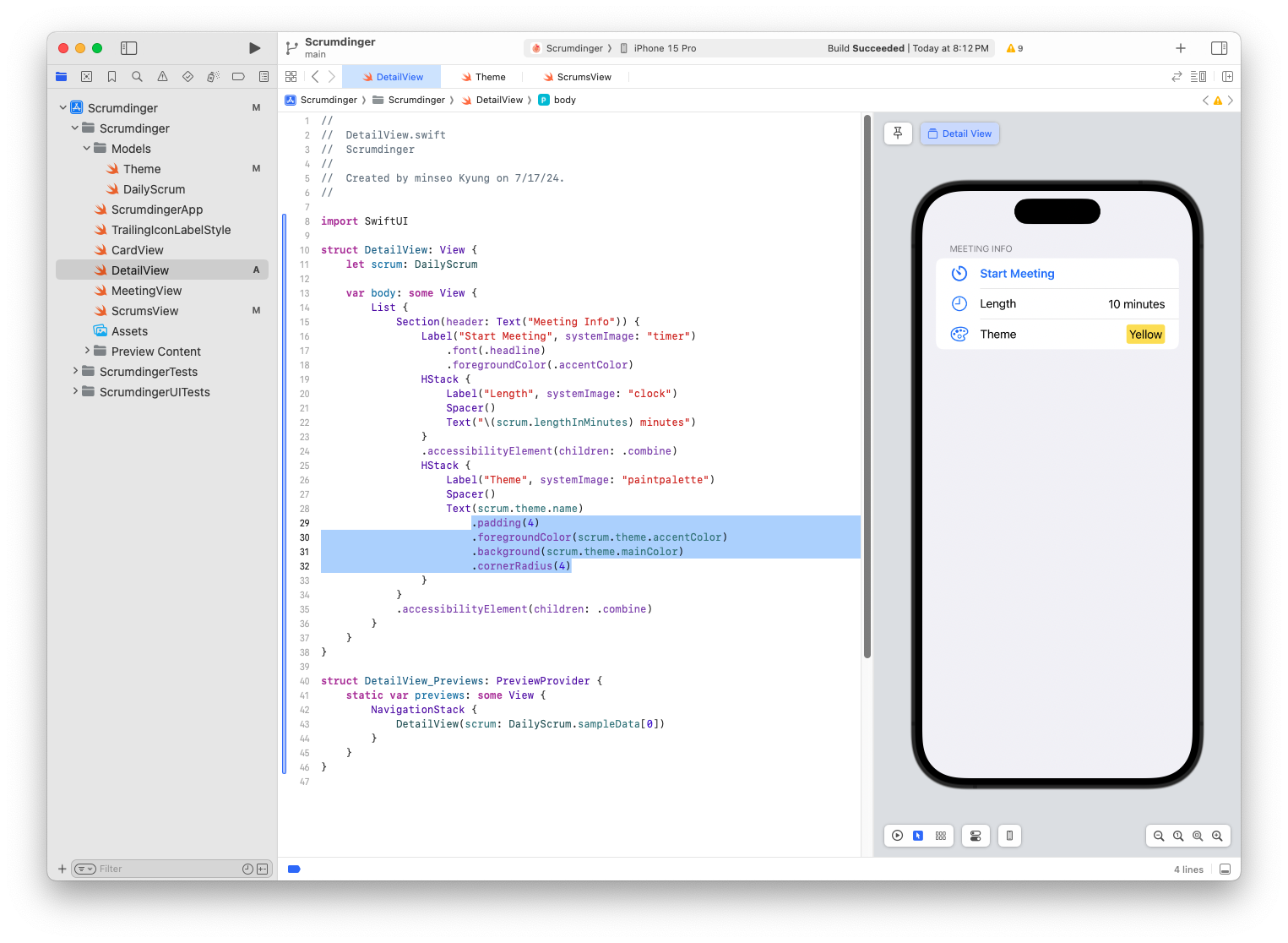 ๋ฅผ ์ถ๊ฐํ๊ณ , ์ด๊ธฐํ์์ Text(scrum.title)
