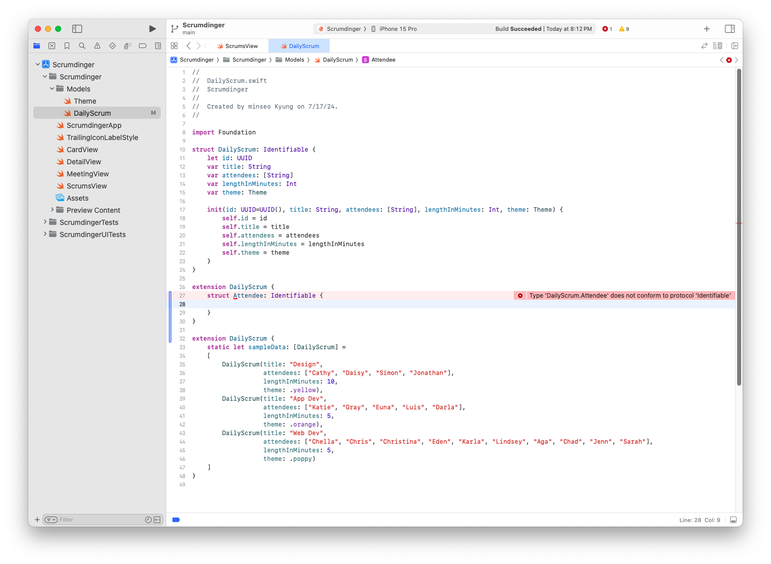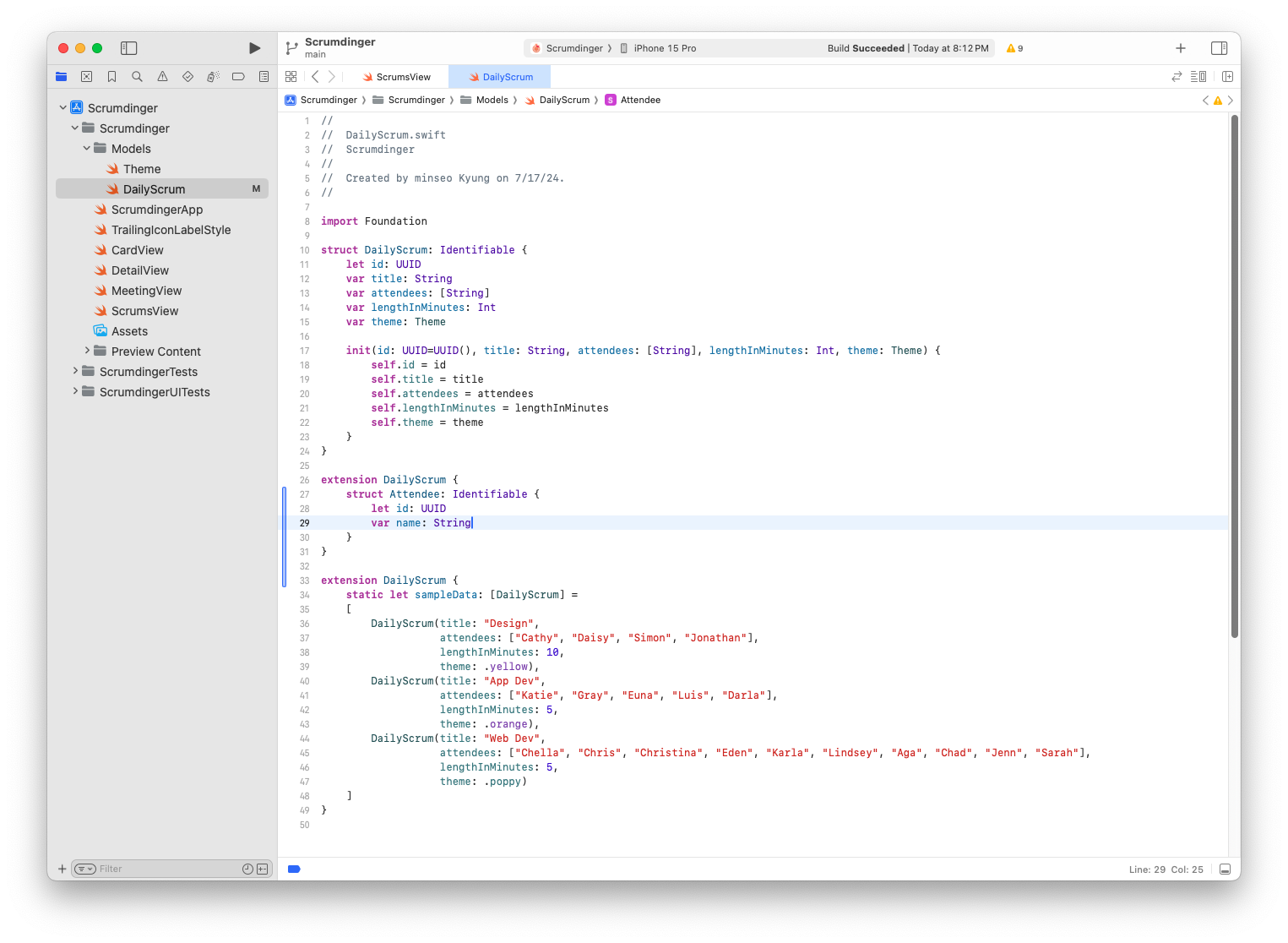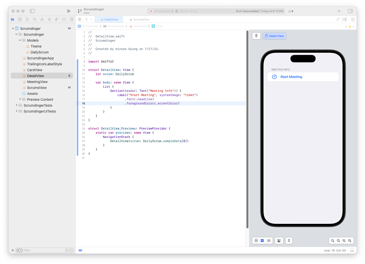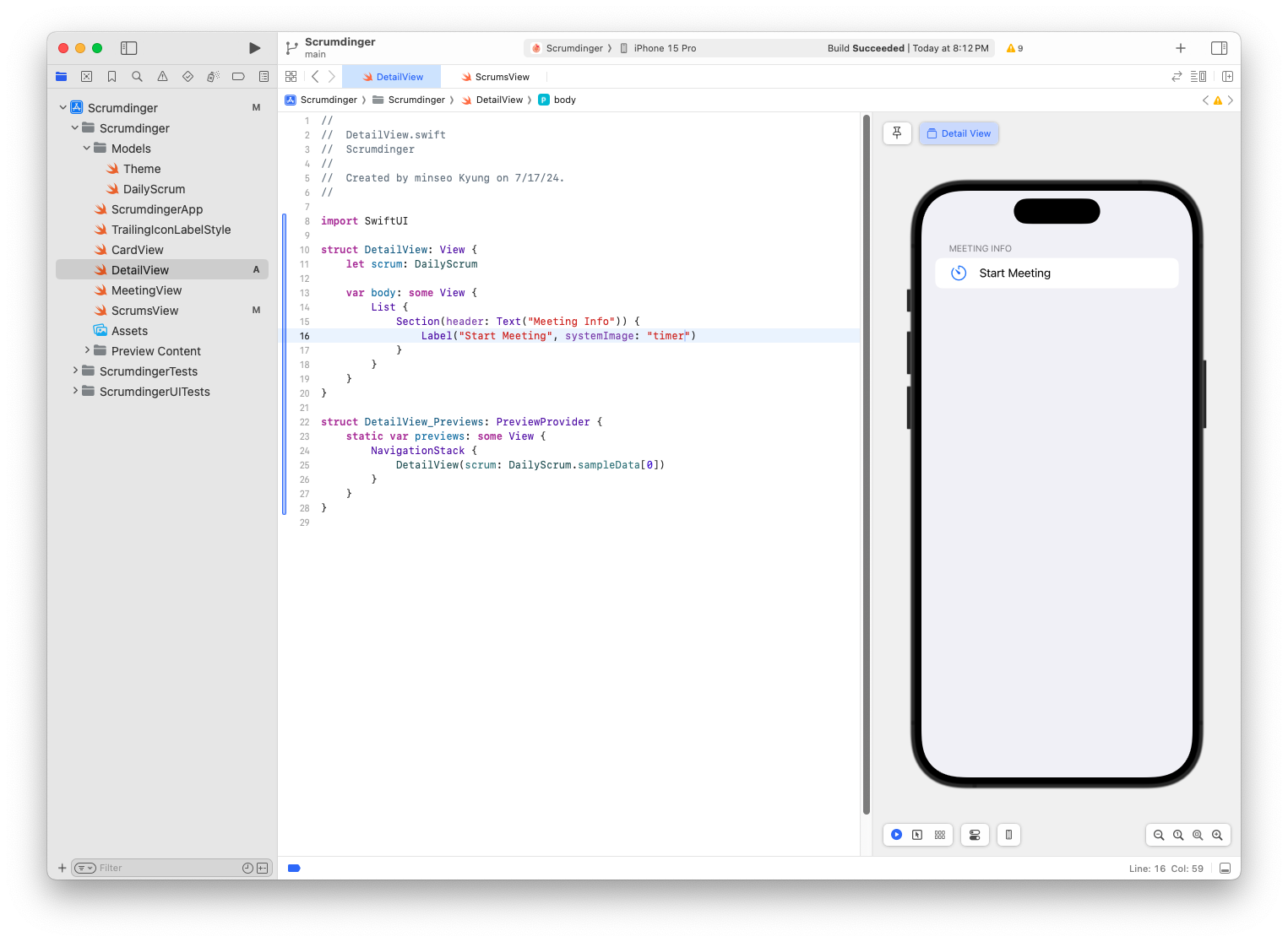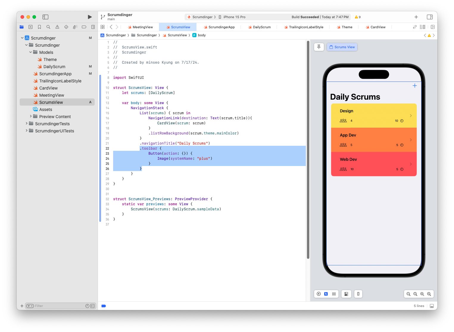 ๋ฅผ ์ถ๊ฐํ๊ณ , ์ด๊ธฐํ์์ Text(scrum.title)