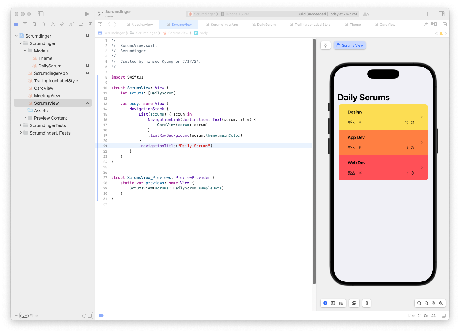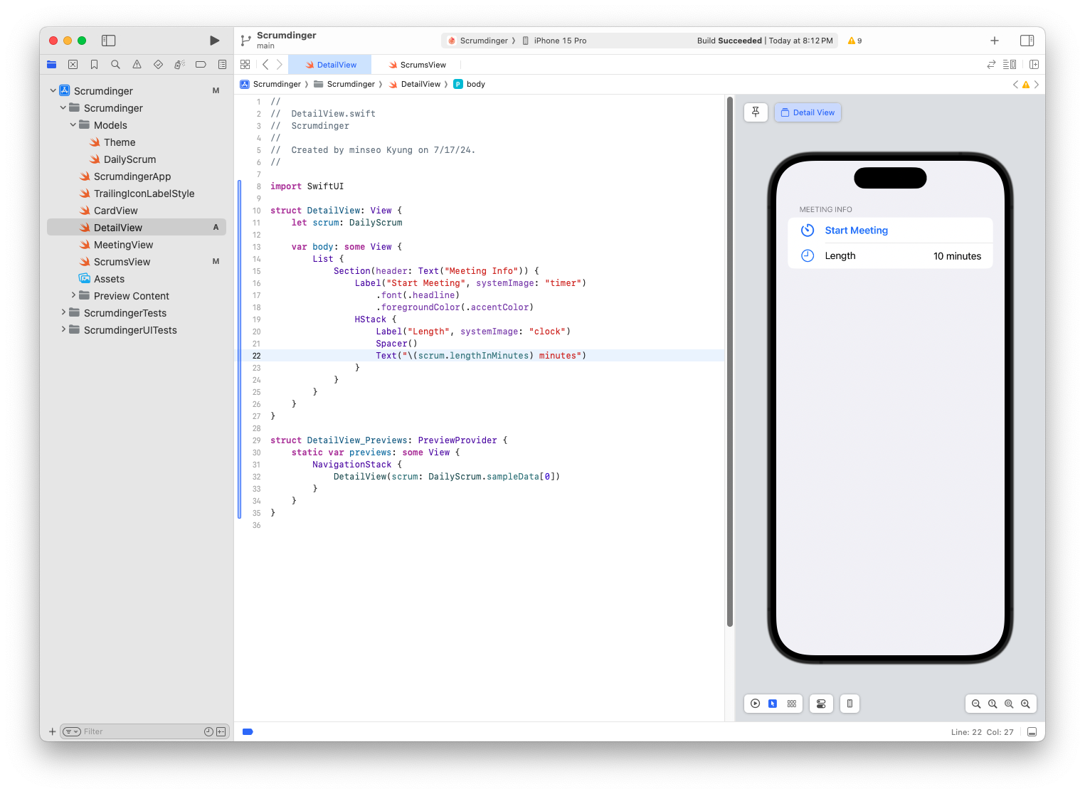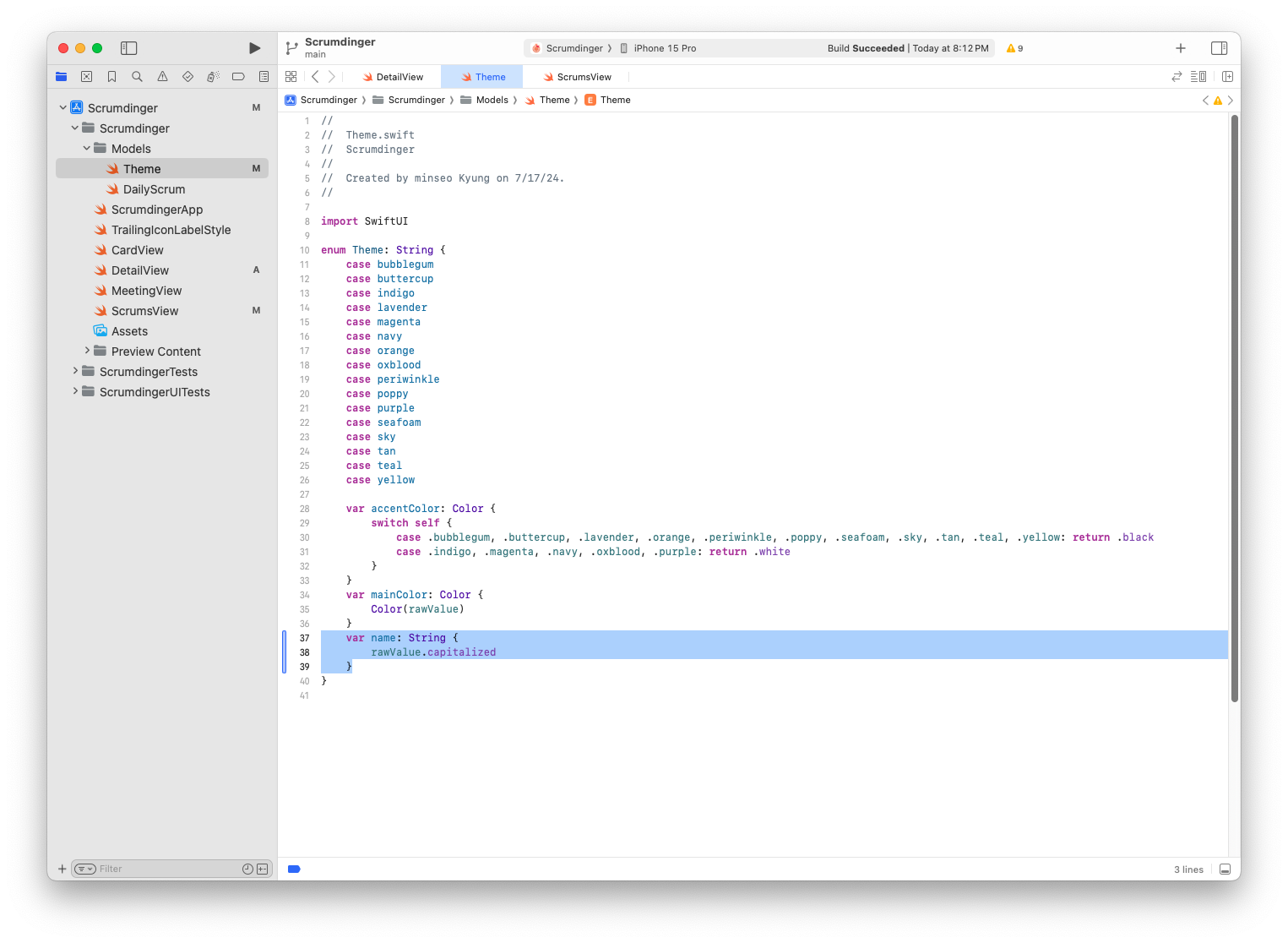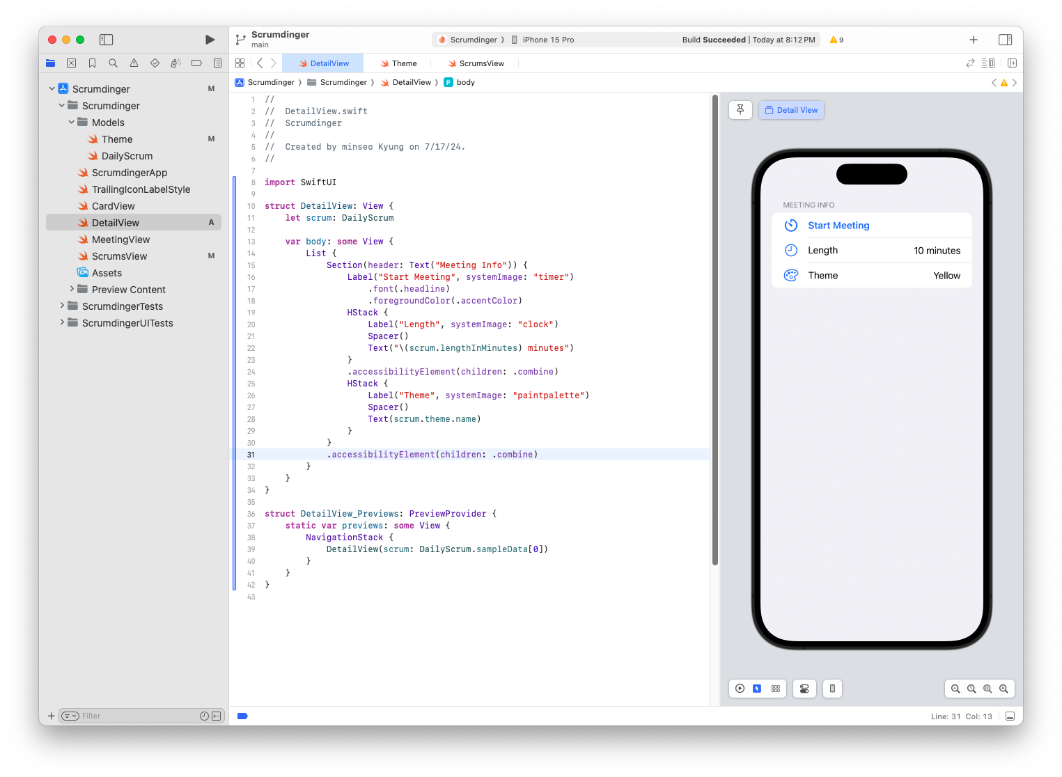 ๋ฅผ ์ถ๊ฐํ๊ณ , ์ด๊ธฐํ์์ Text(scrum.title)