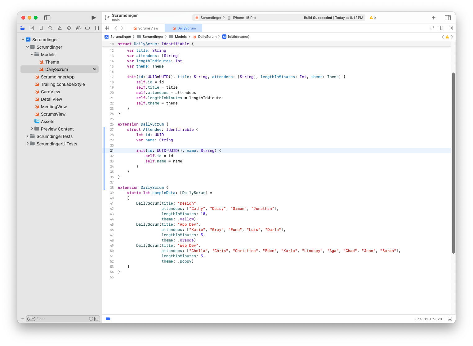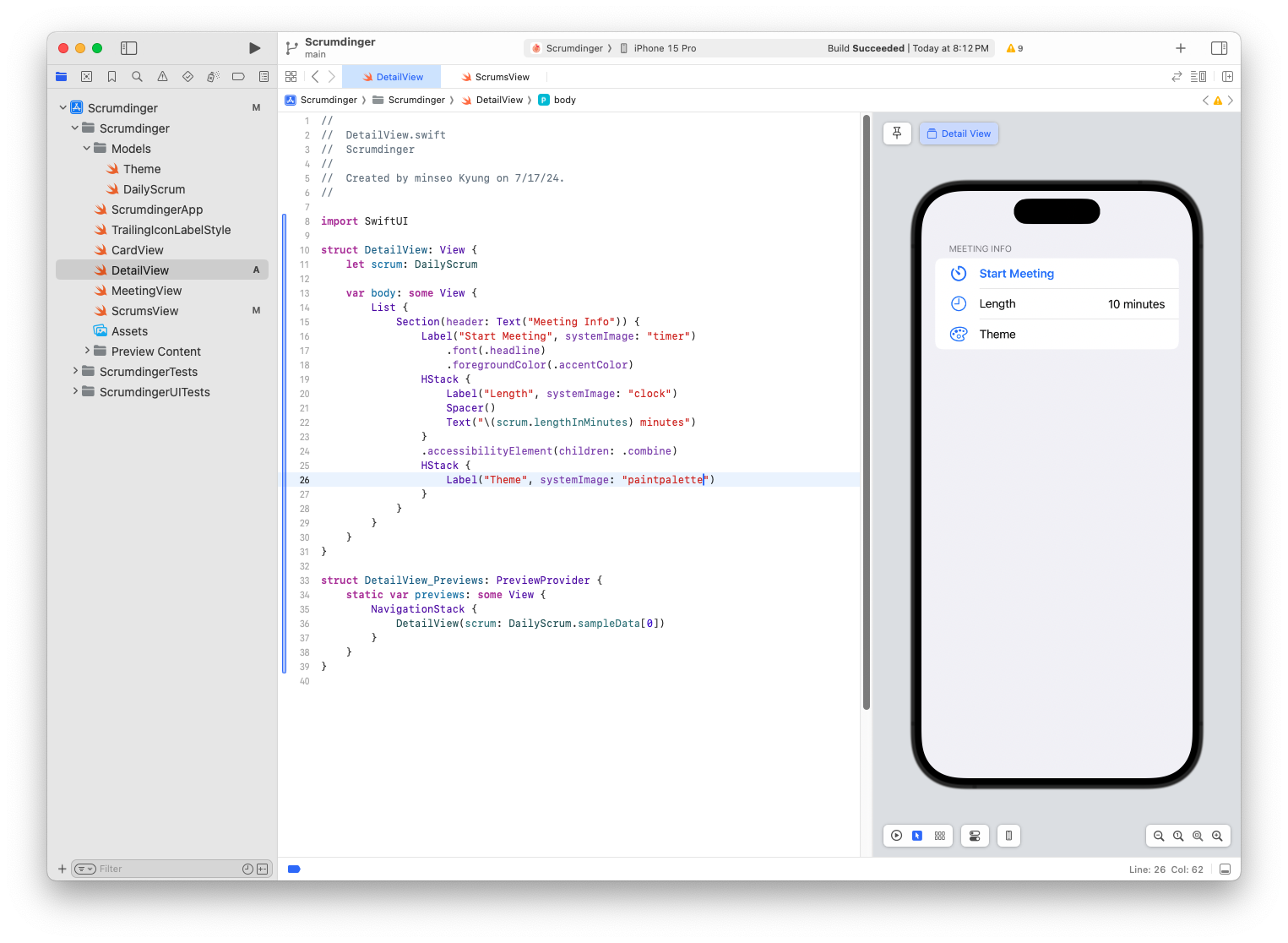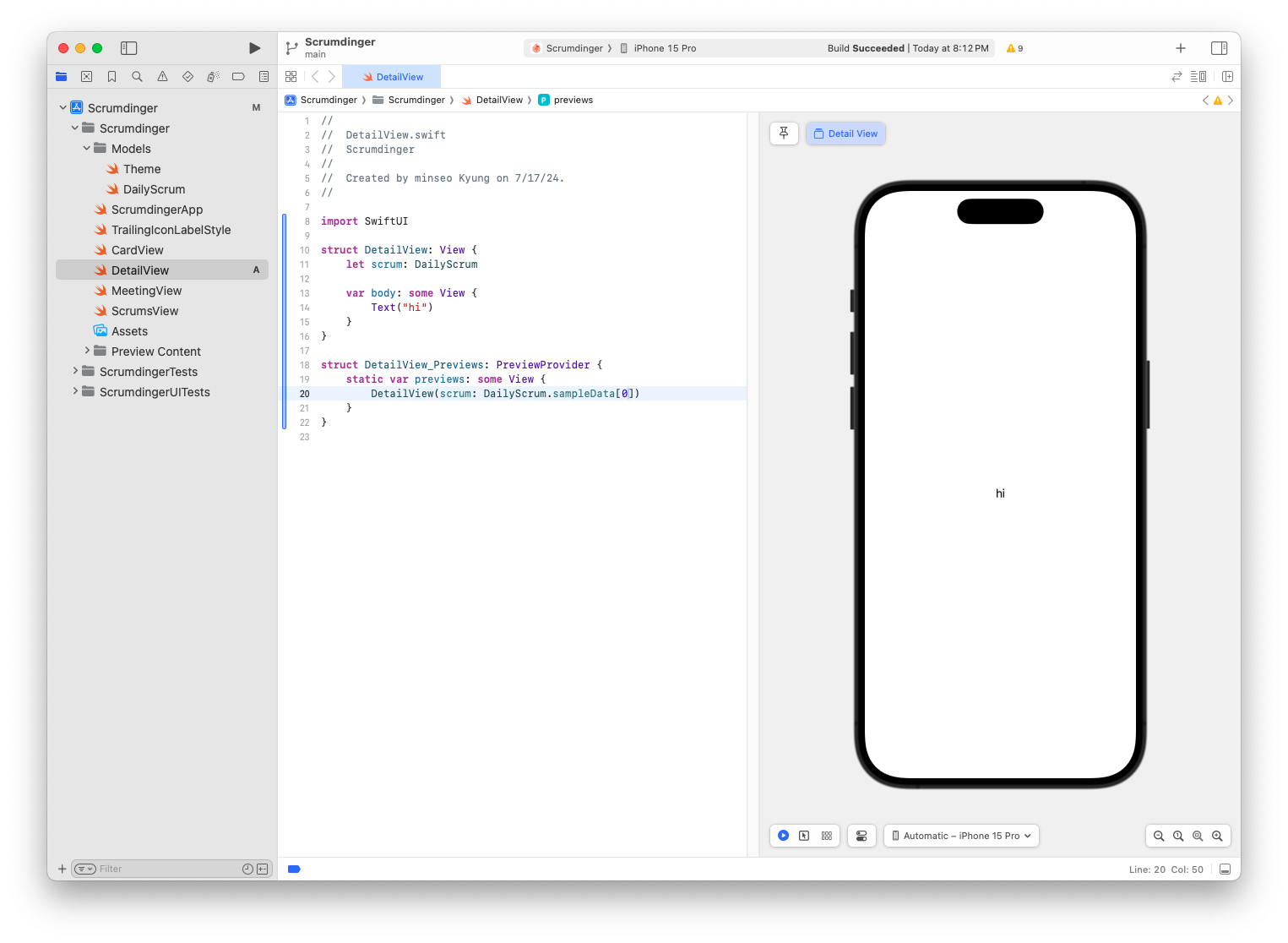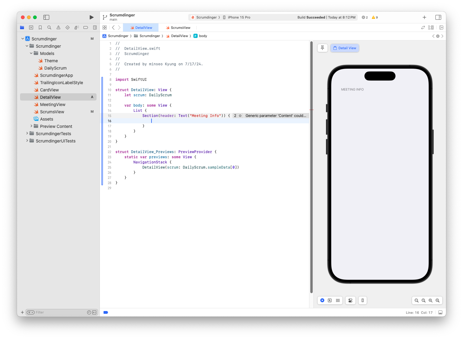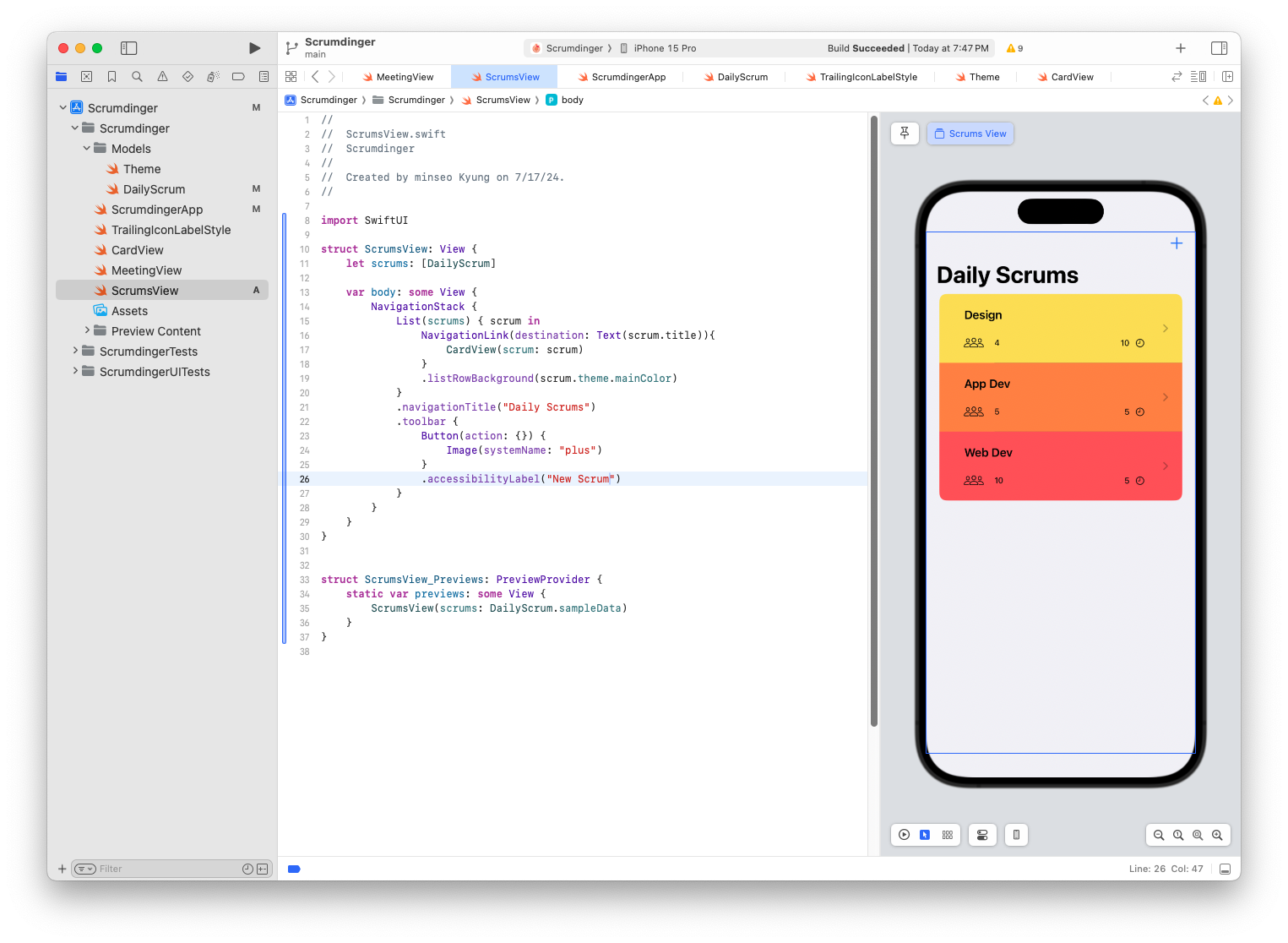 ๋ฅผ ์ถ๊ฐํ๊ณ , ์ด๊ธฐํ์์ Text(scrum.title)