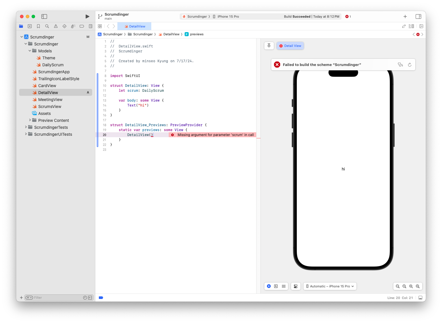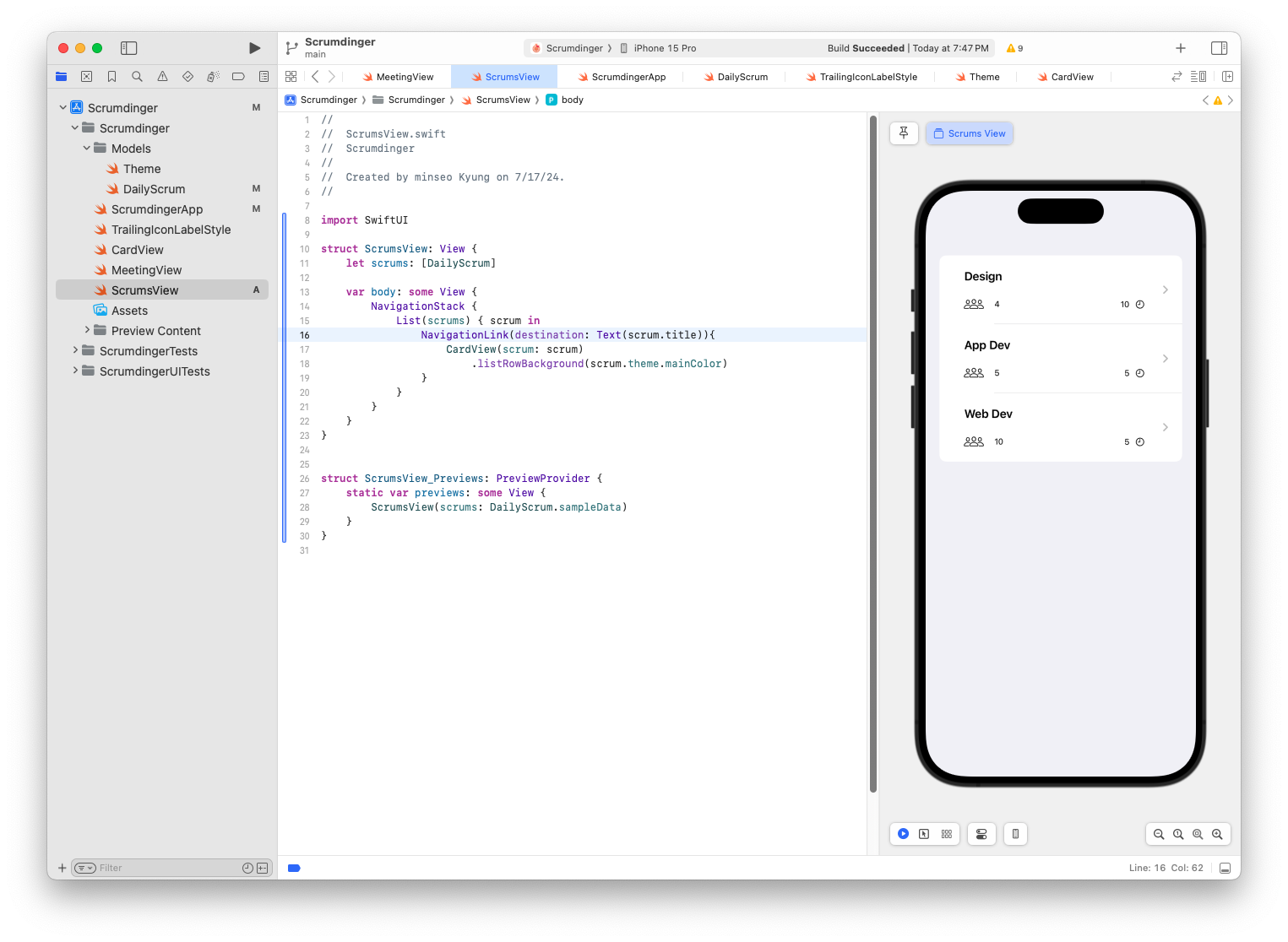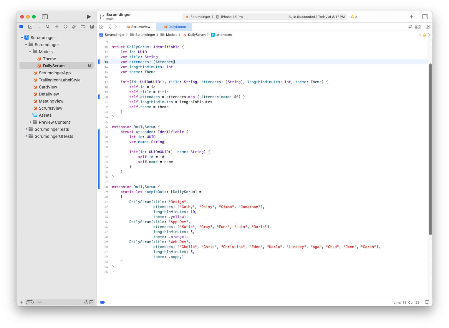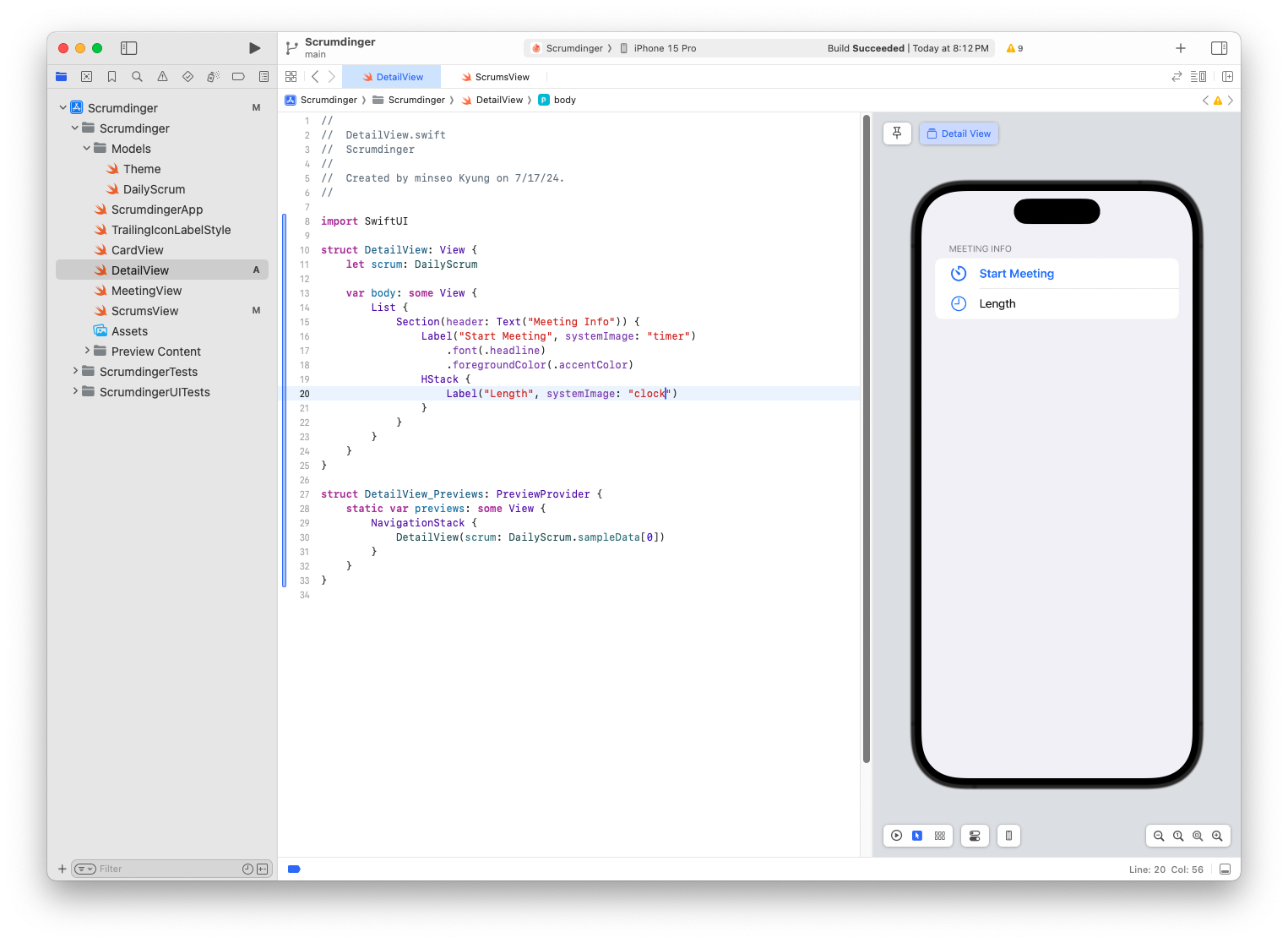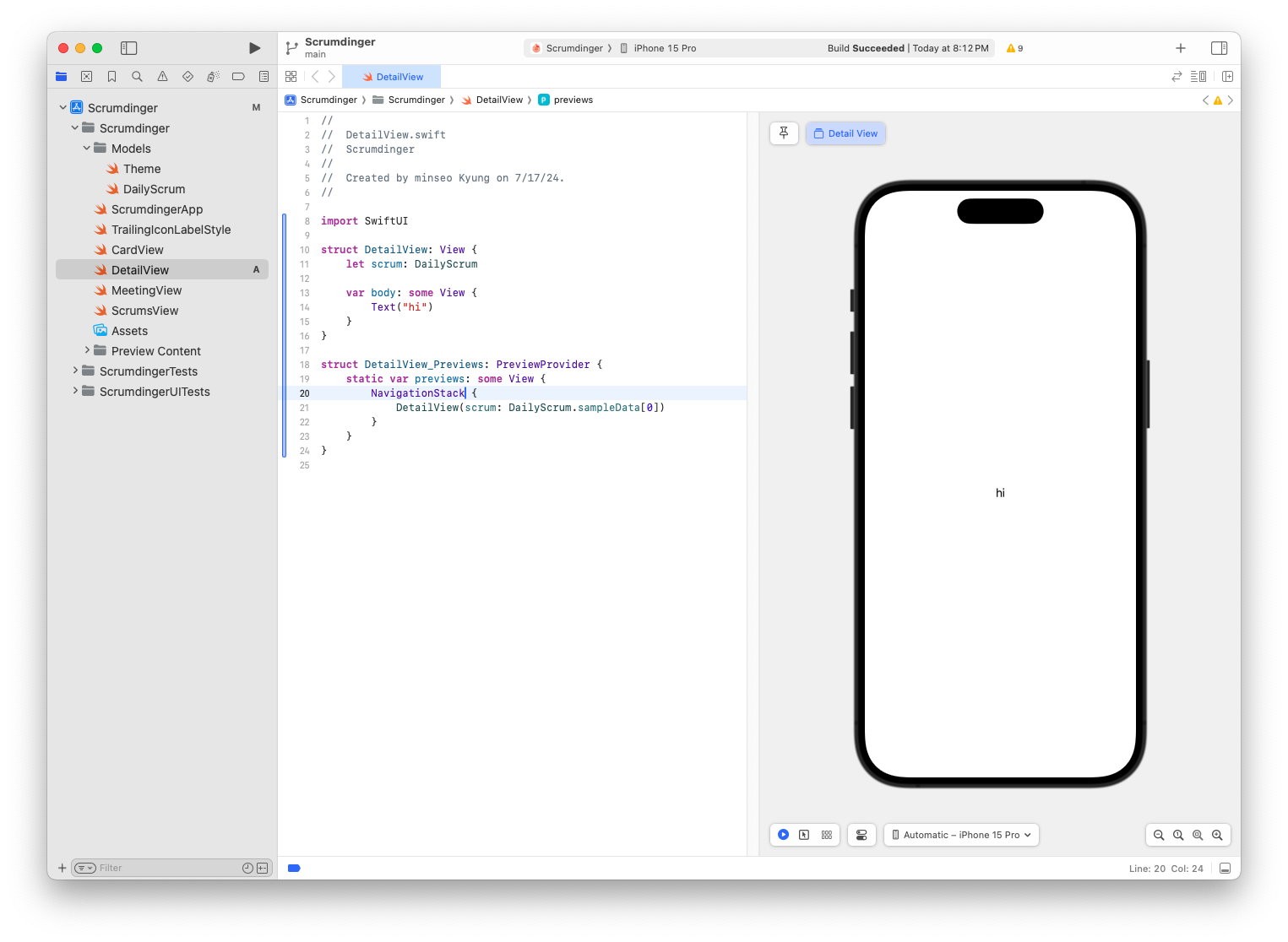 ๋ฅผ ์ถ๊ฐํ๊ณ , ์ด๊ธฐํ์์ Text(scrum.title)