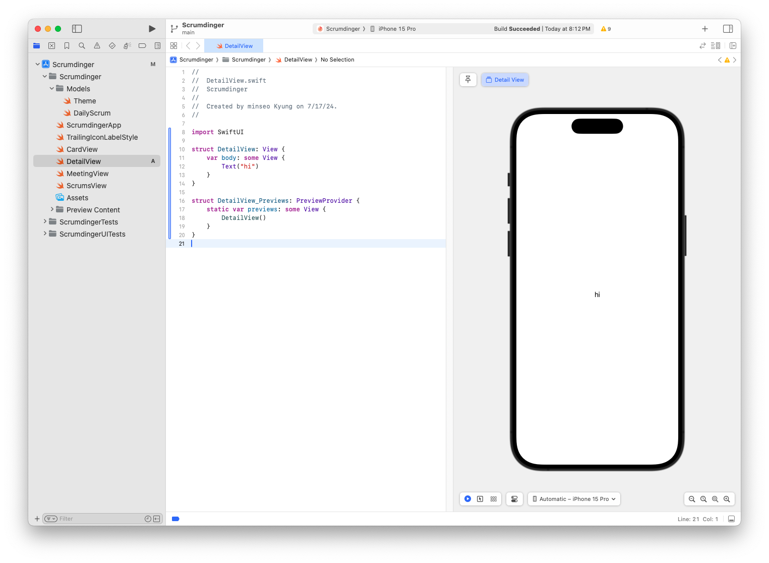์๋ก์ด SwiftUI View ํ์ผ์ ์์ฑํ๊ณ ์ด๋ฆ์ DetailView.swift