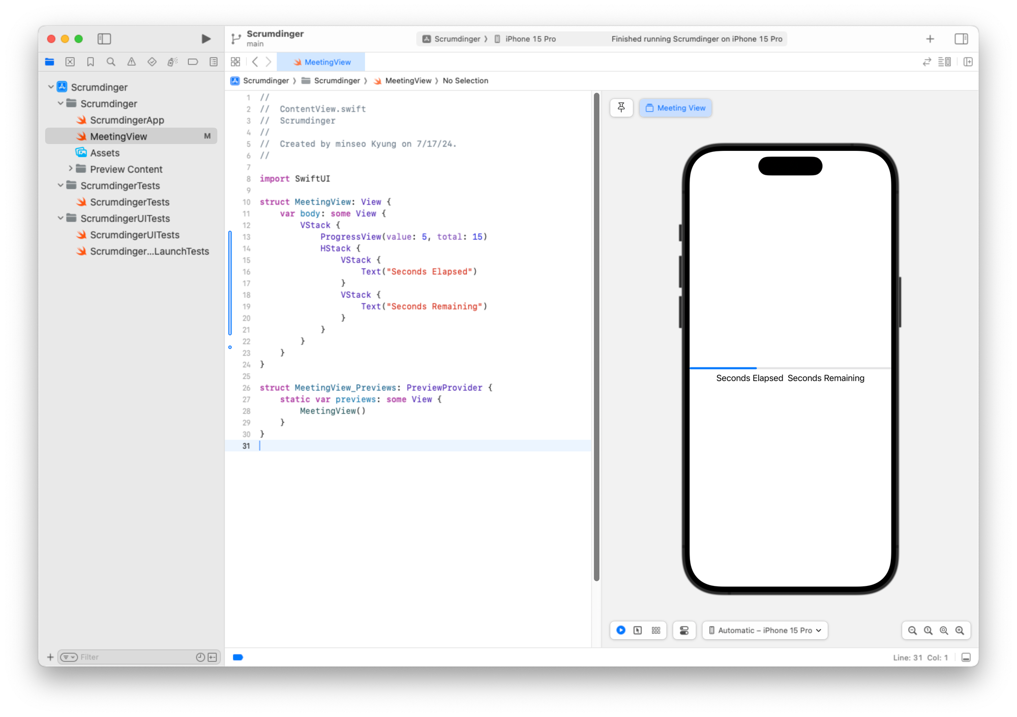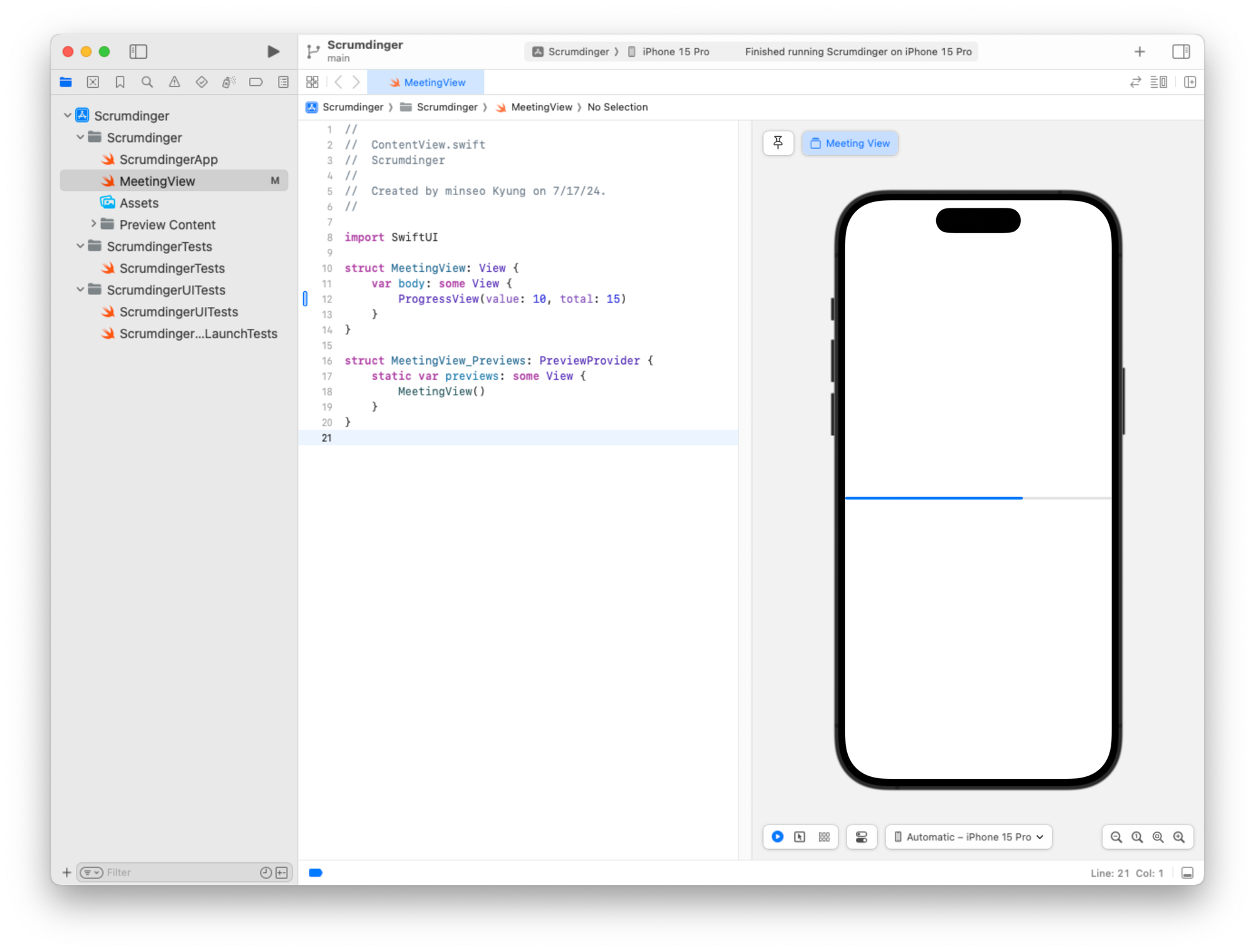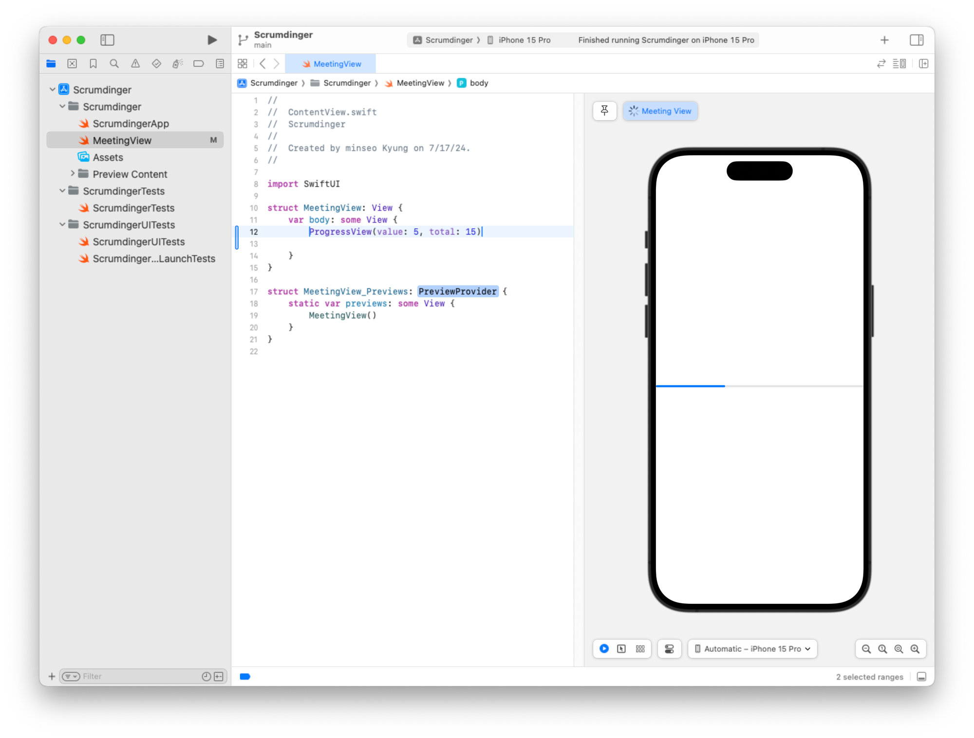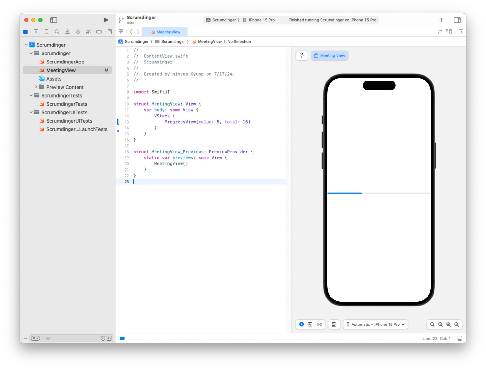 미리보기 구조체도 일관성을 위해 이름을 MeetingView_Previews로 변경할 수 있습니다.