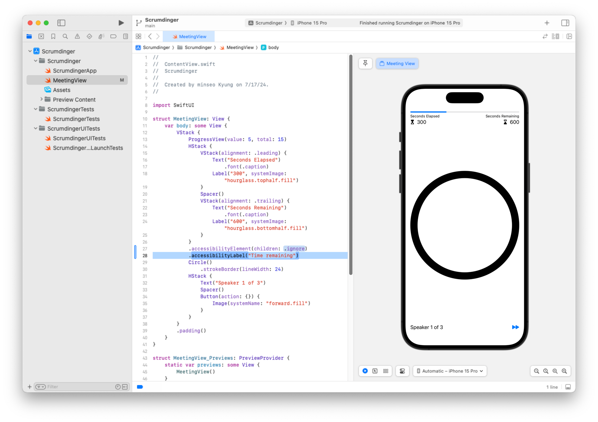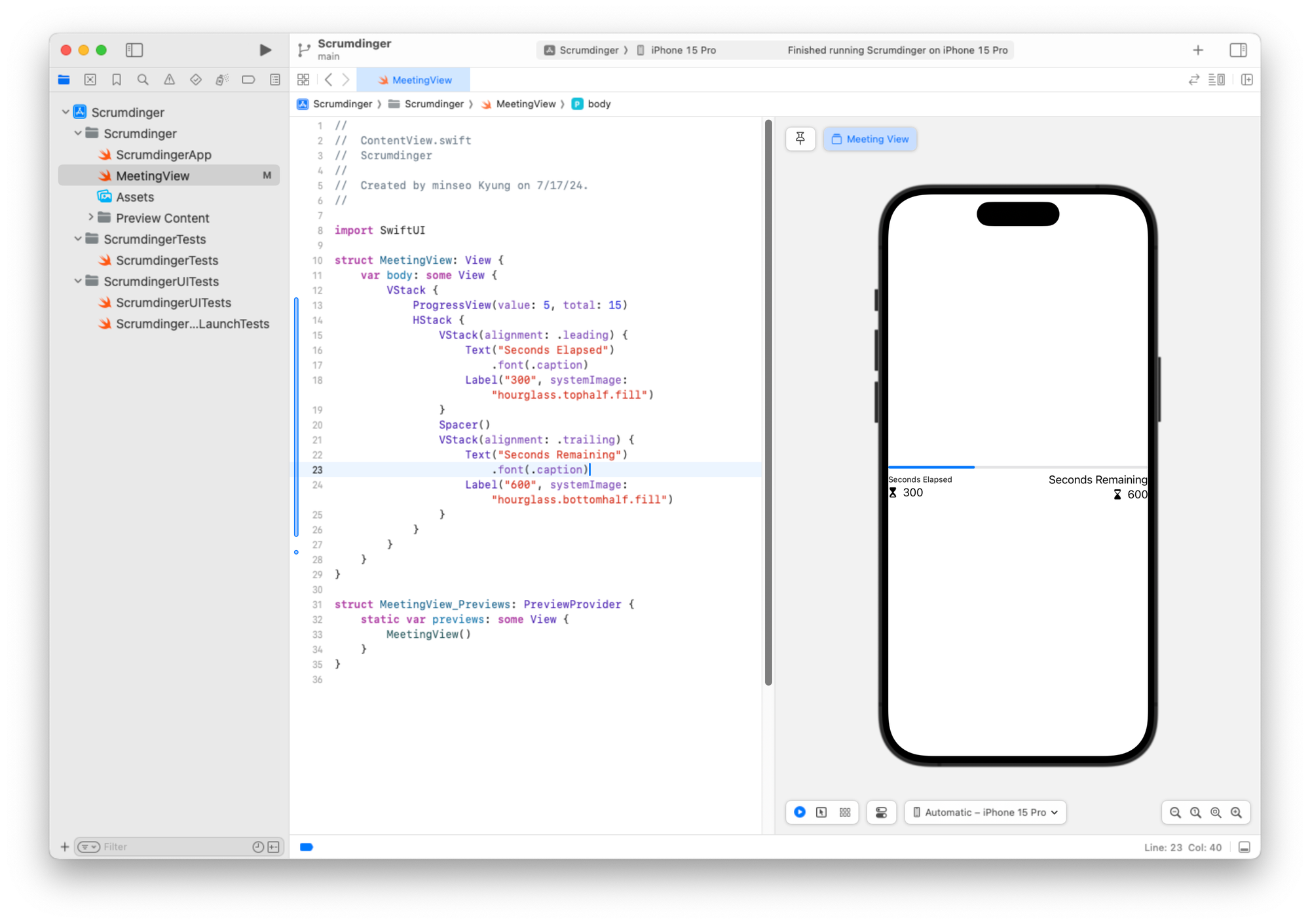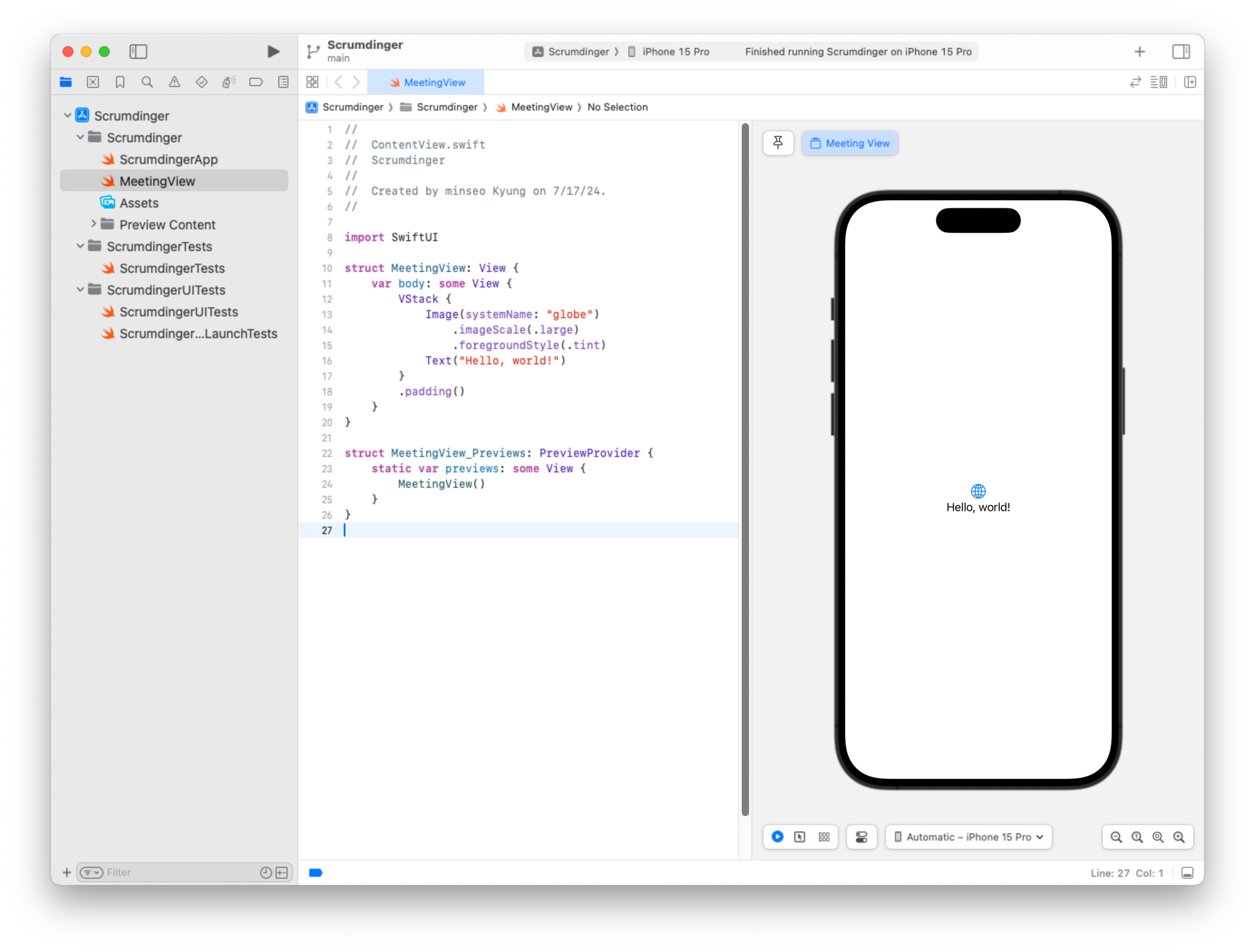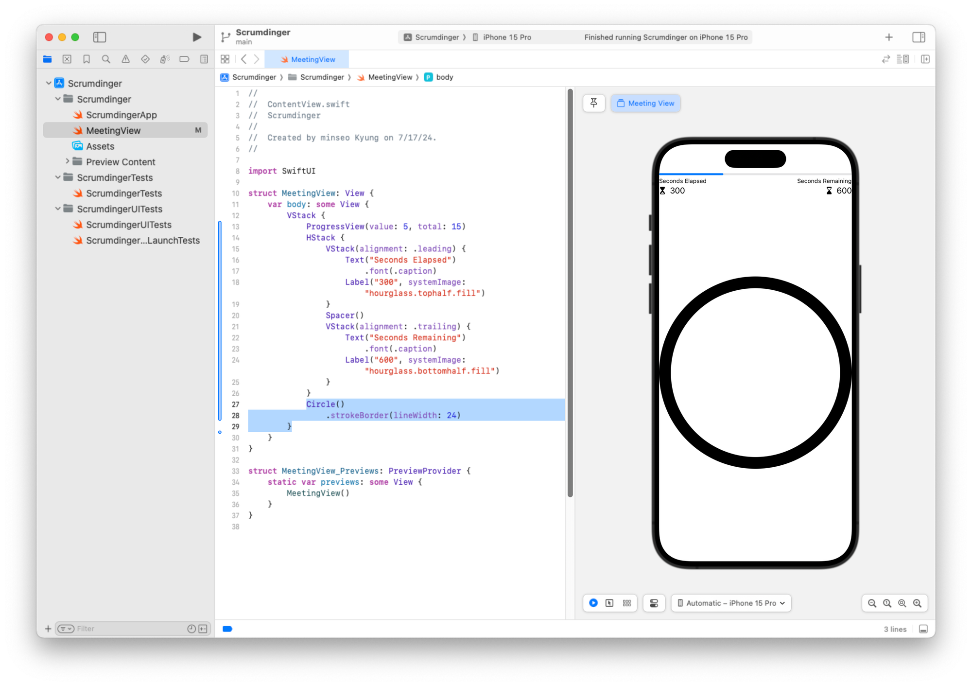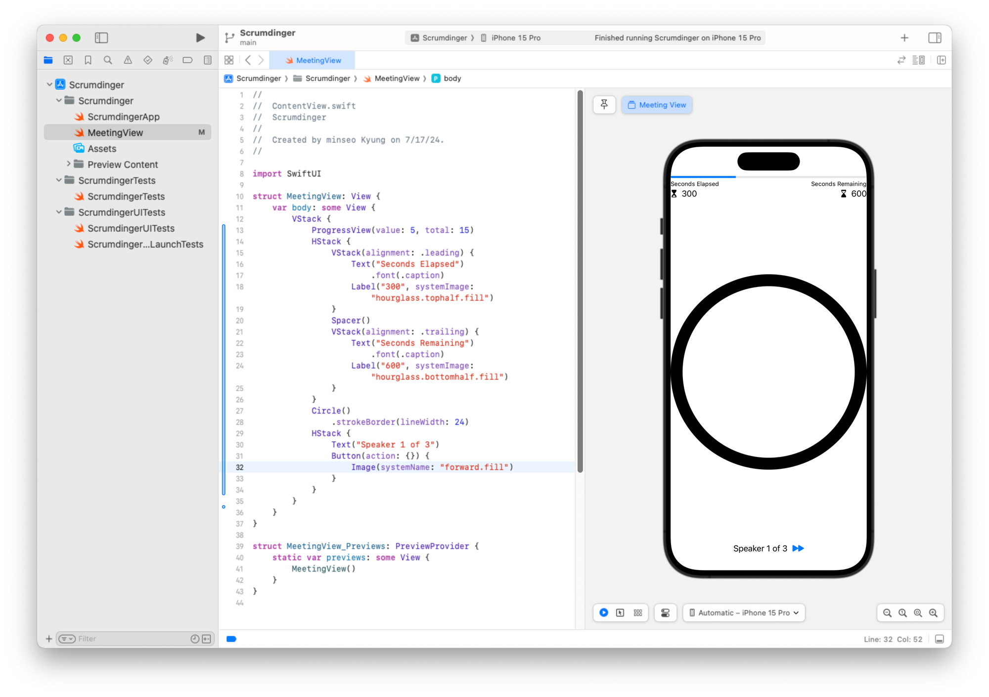 미리보기 구조체도 일관성을 위해 이름을 MeetingView_Previews로 변경할 수 있습니다.
