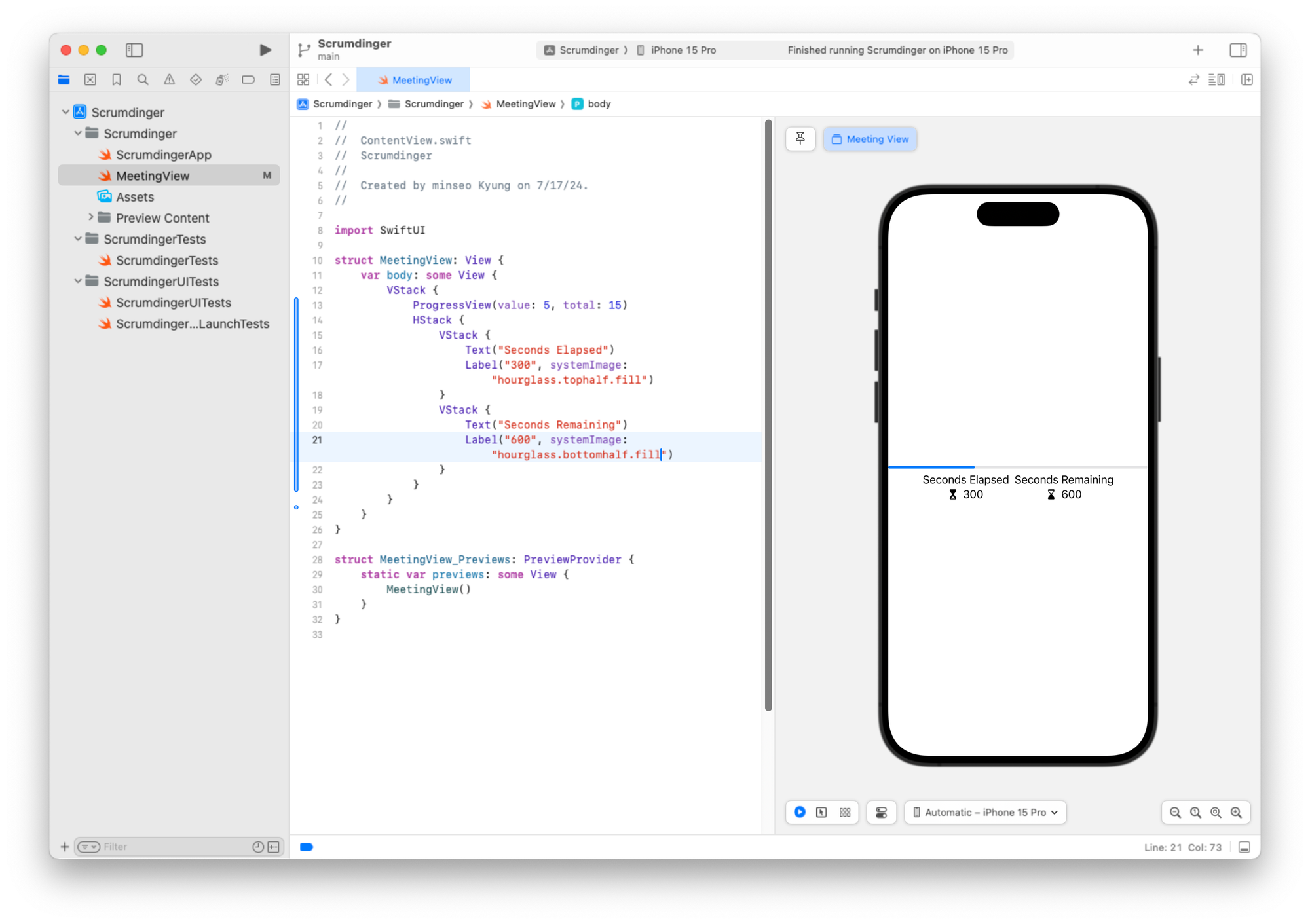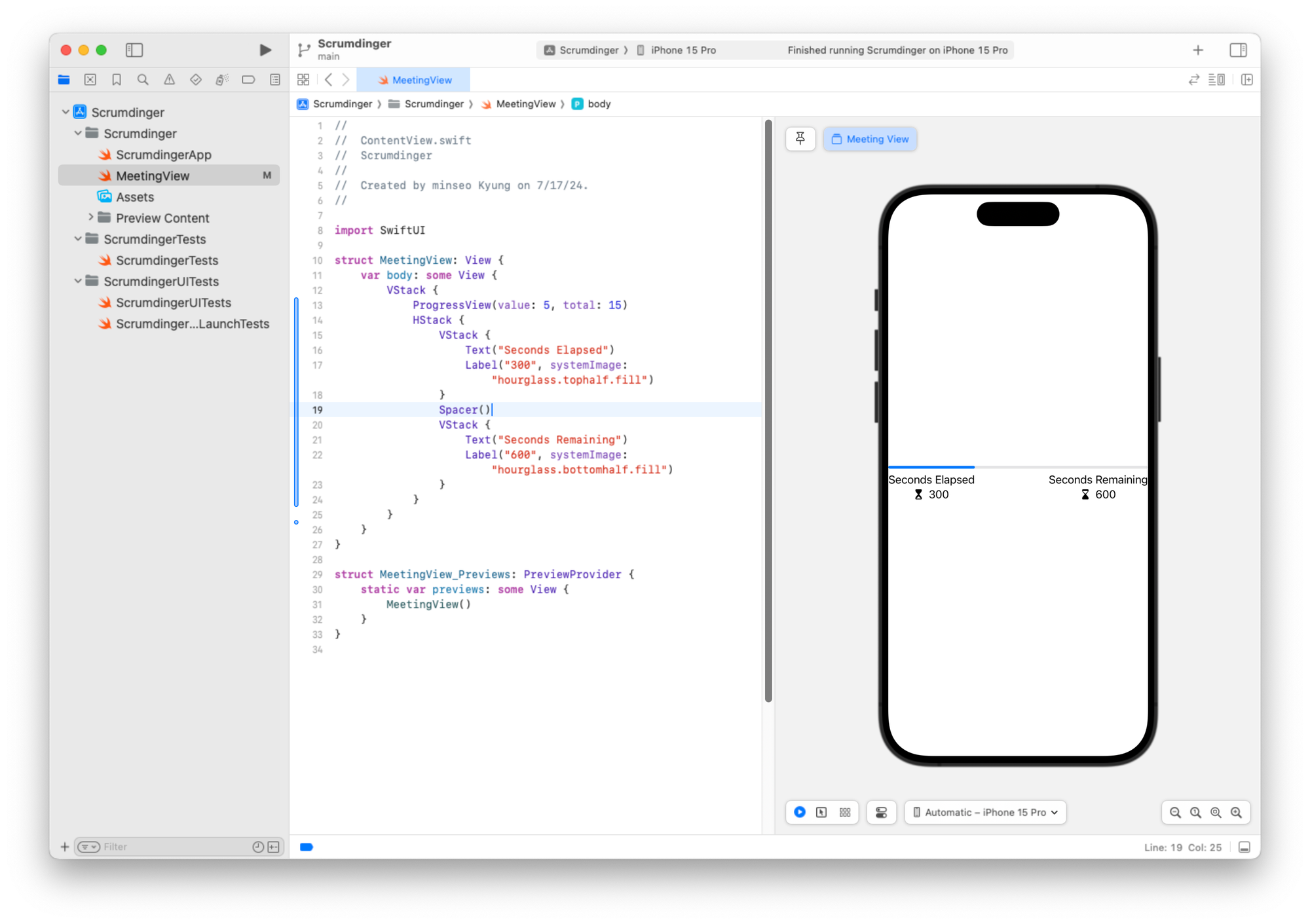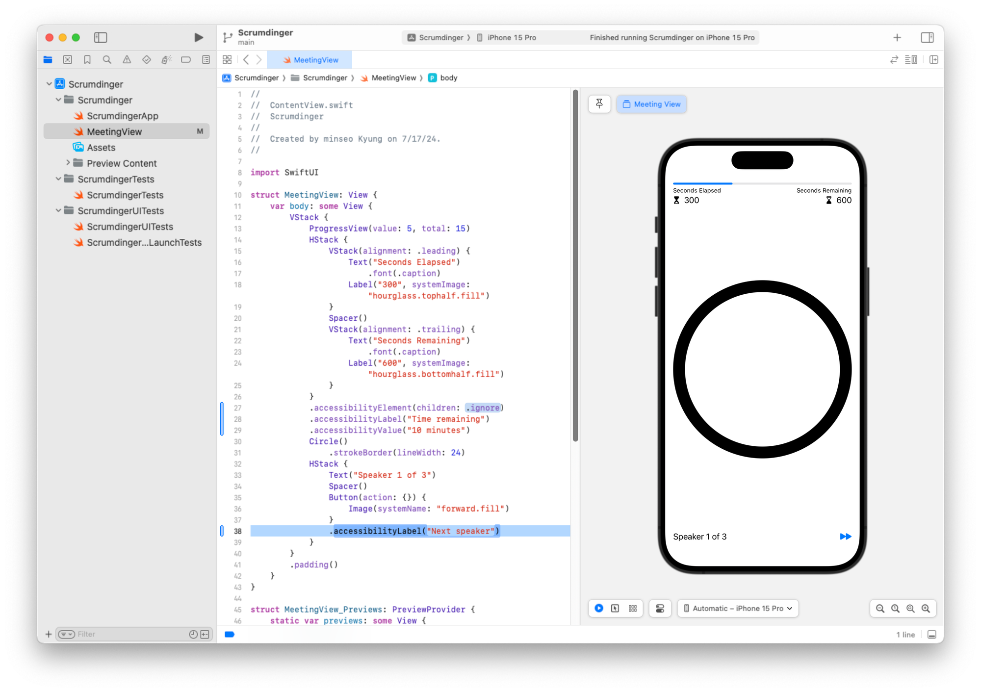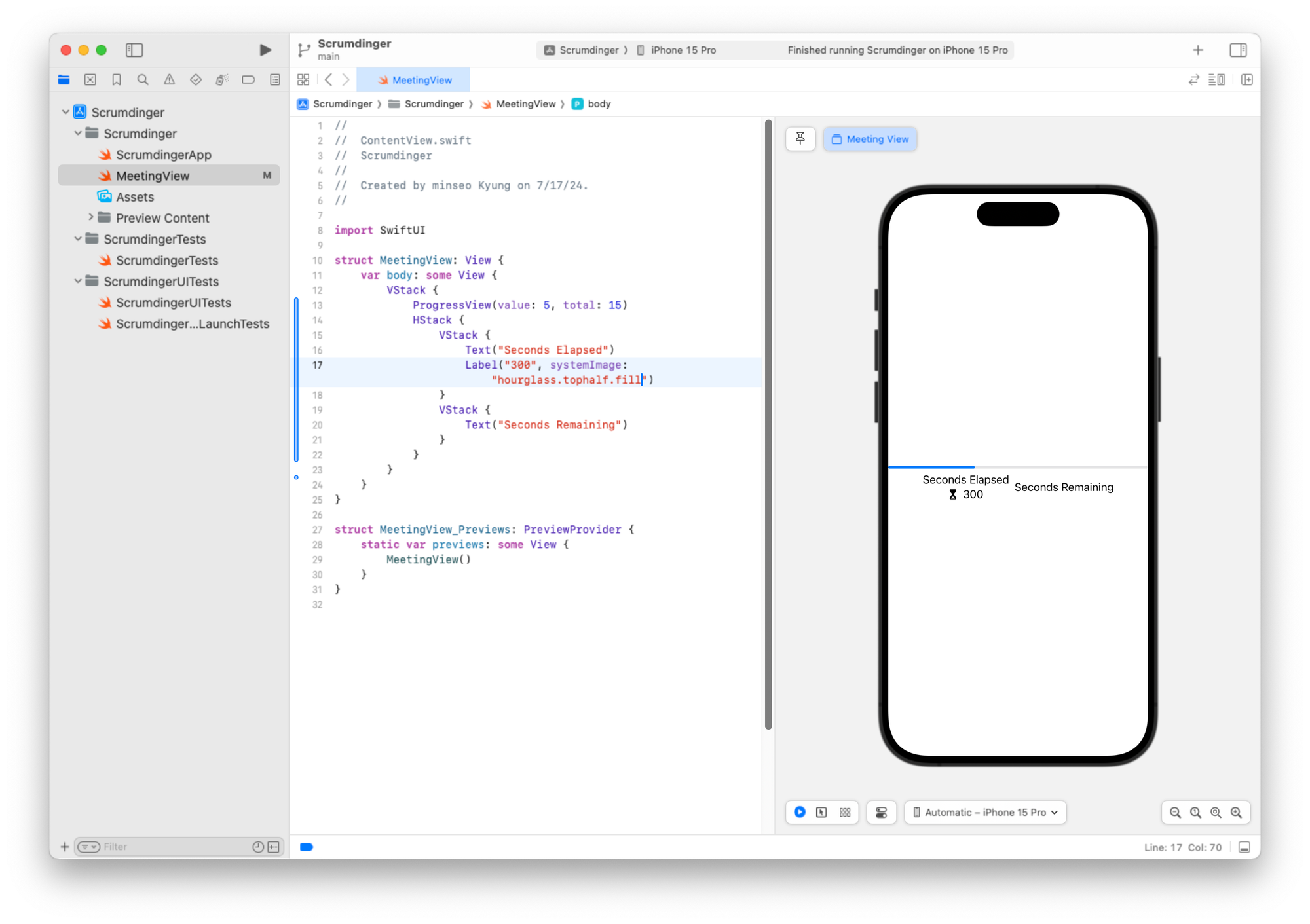 미리보기 구조체도 일관성을 위해 이름을 MeetingView_Previews로 변경할 수 있습니다.