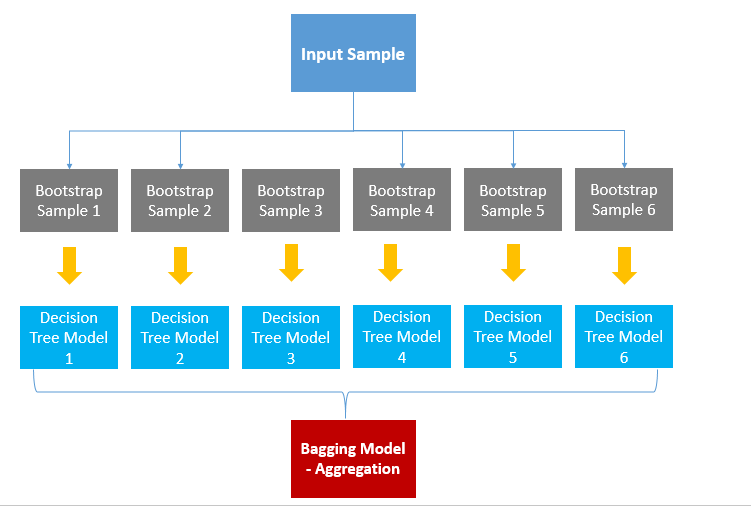 Bootstrap Aggregation의 약자로 샘플을 여러번 뽑아(비복원 추출) 각 모델을 학습시켜 결과물을 집계하는 방법