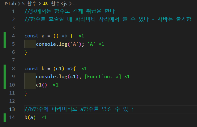 함수호출 파라미터로 함수객체를 사용할 수 있다