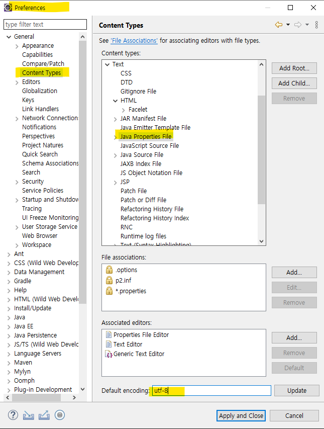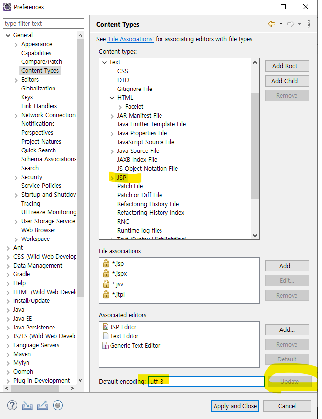 git 사용할 경우 > Preference 바꾸기 : utf-8 (encoding 타입, 한글 에러 방지) > update 누르기