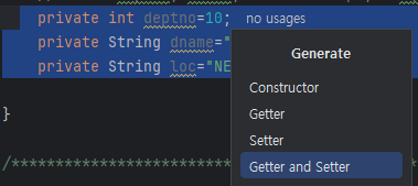 - 배열 크기 3 -> 한 방에 변수3개가 들어있음!! deptno, dname, loc
