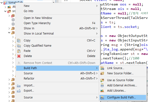 server = new ServerSocket(port); (65열) //1~65570 사이 숫자 사용