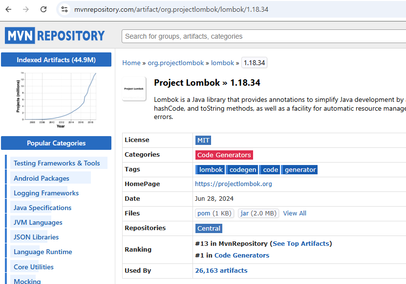 eclipse -> 구글 maven repository 에서 lombok 최신 설치