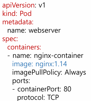 $ kubectl run nginx-pod --image=nginx:1.14 --port 80 --dry-run -o yaml > pod-nginx.yaml