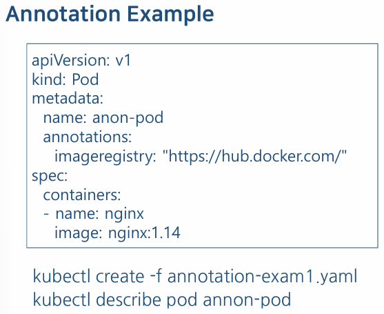 - kubernetes에게 특정 정보 전달할 용도로 사용